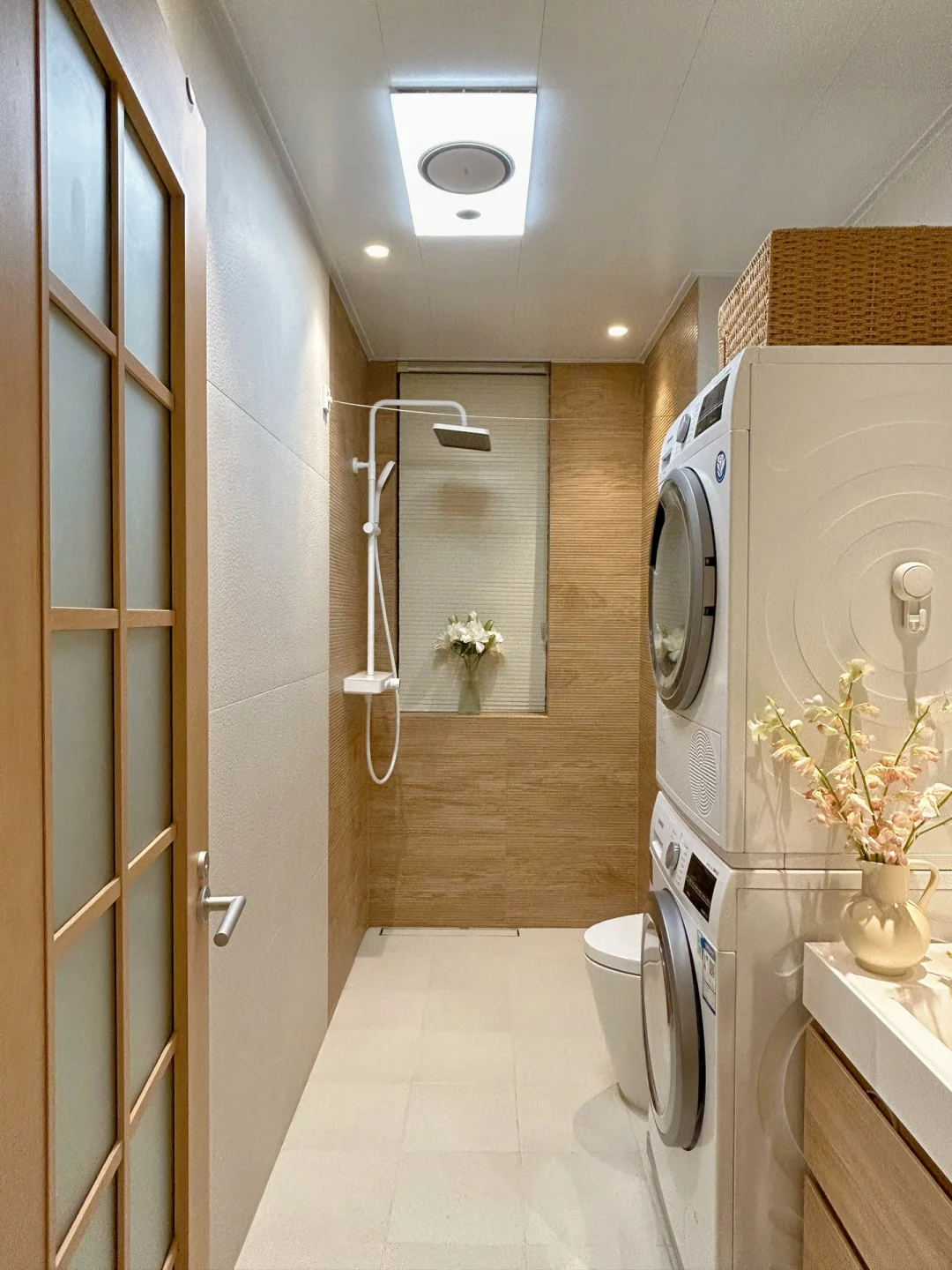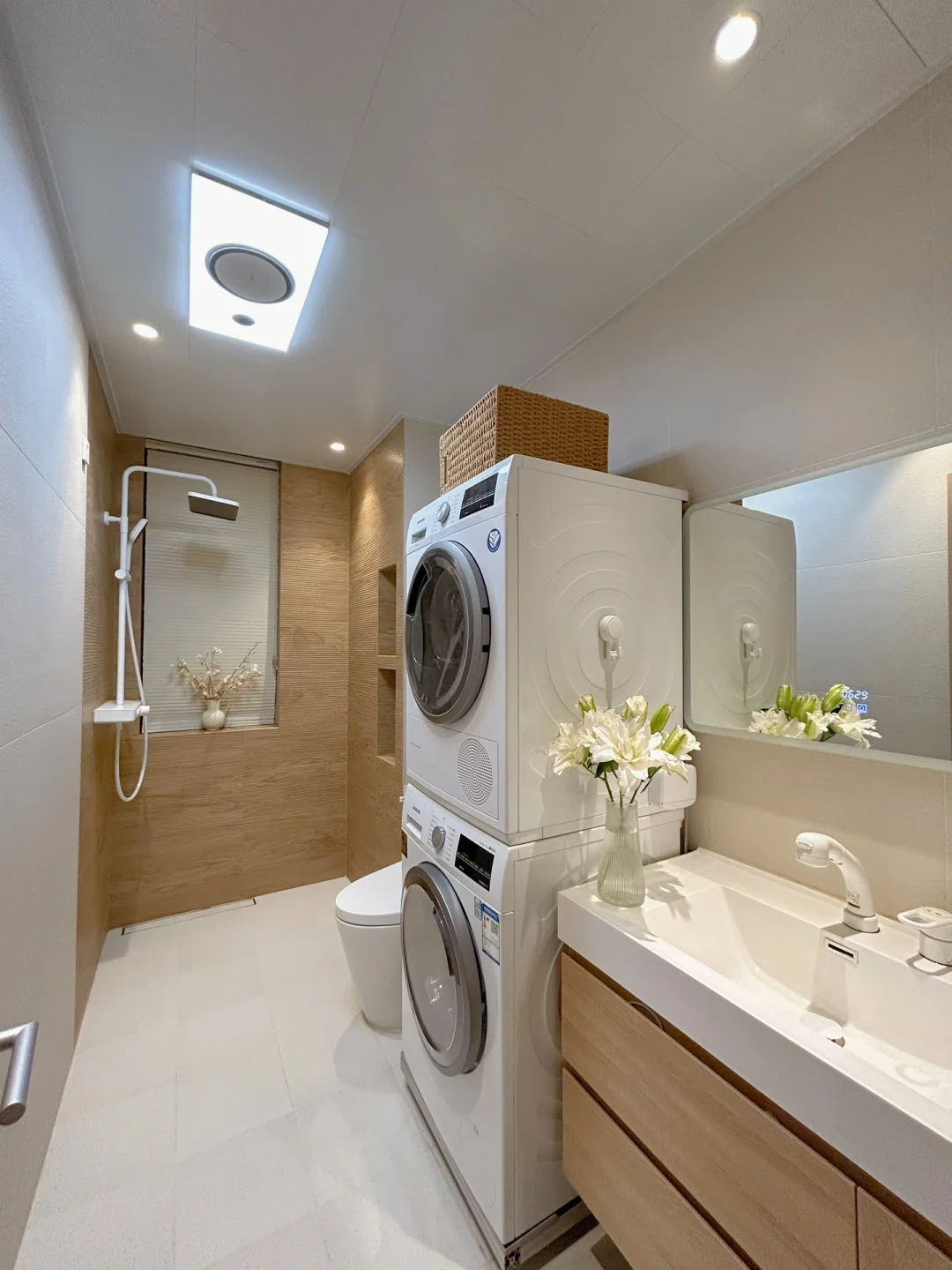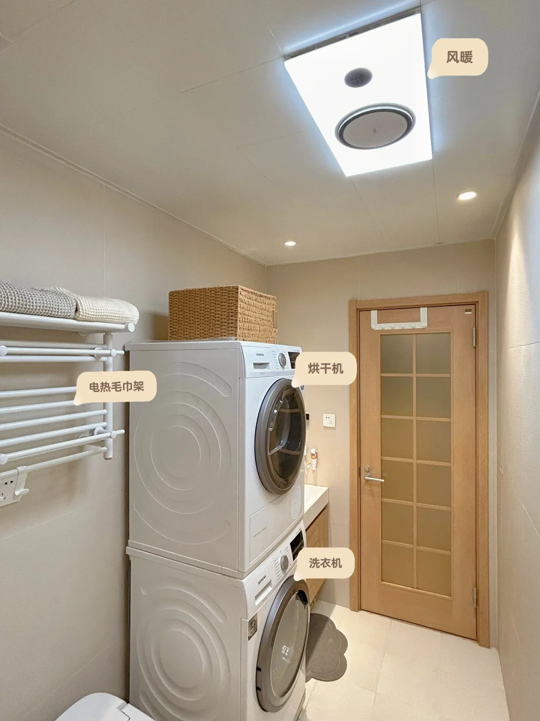 大件衣物靠烘干机,小件靠隐形晾衣绳,还有电热毛巾架,完全都能解决!