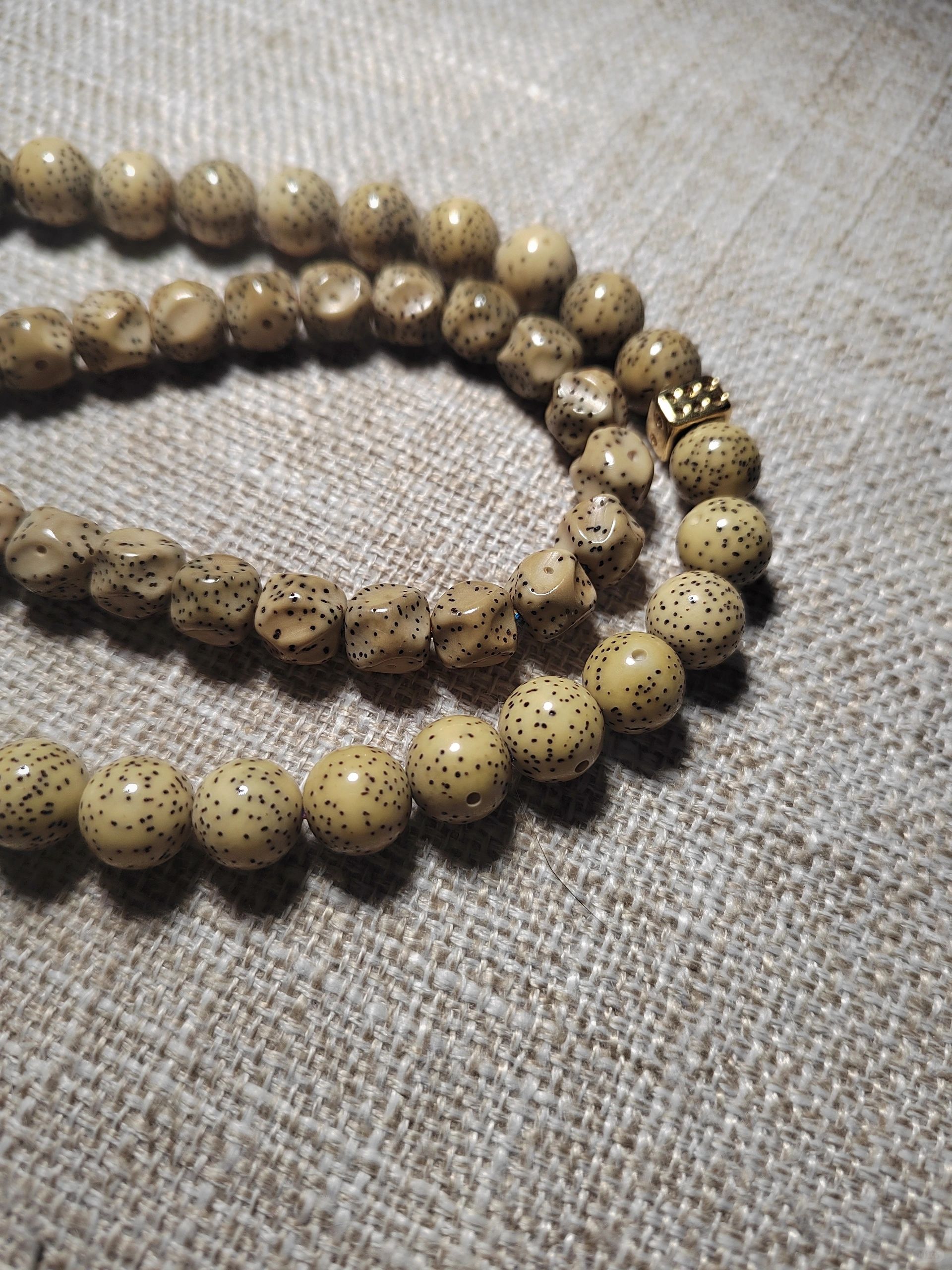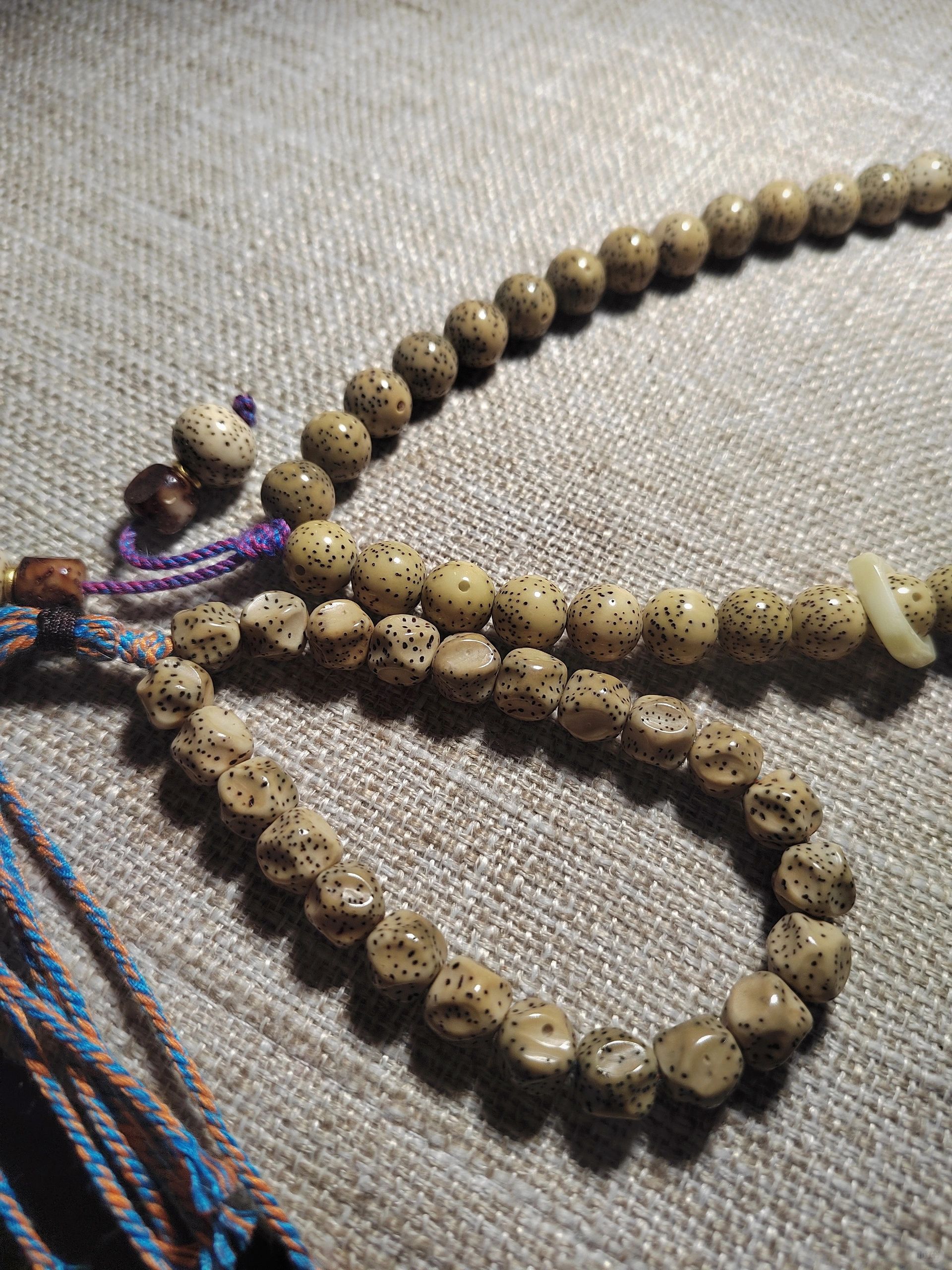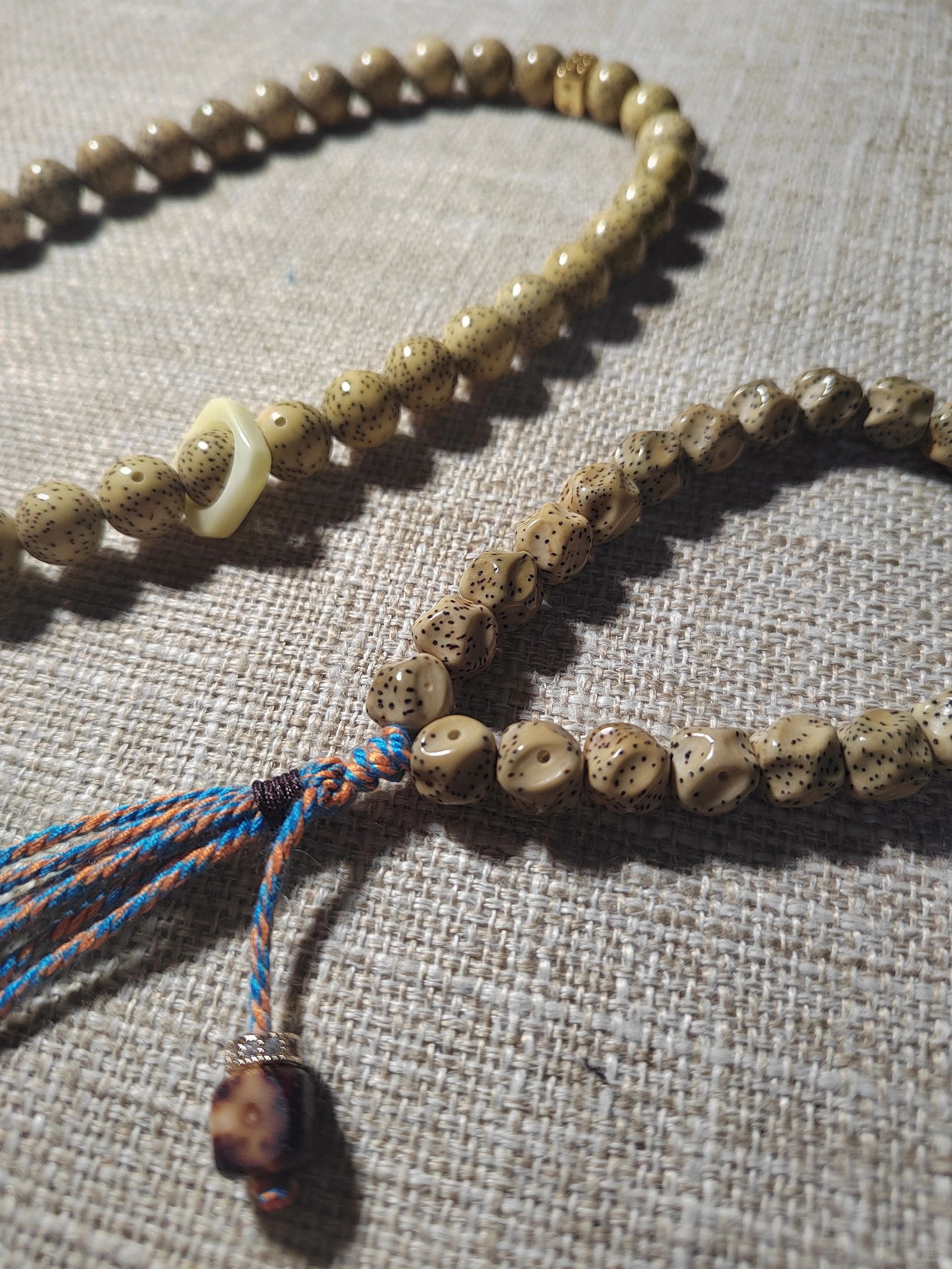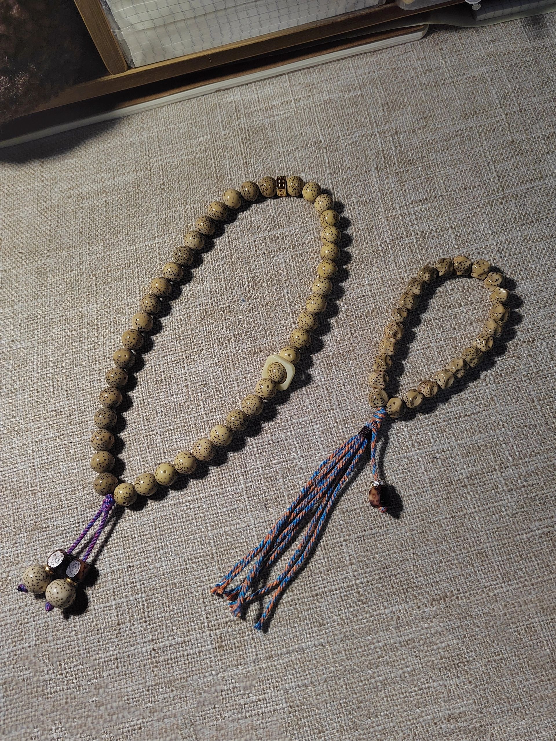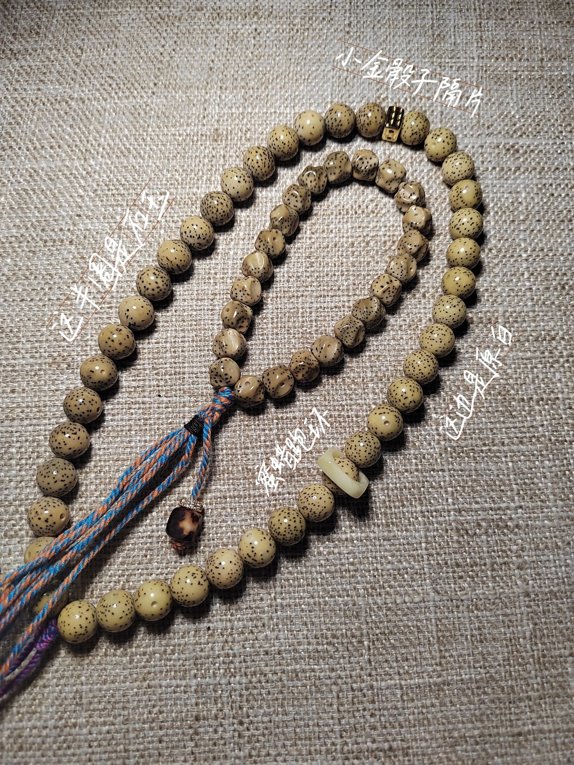 两串圆珠(石玉x1 原白x1)合成一条 坠子用其他串的备用珠随手一编~方便盘又有趣