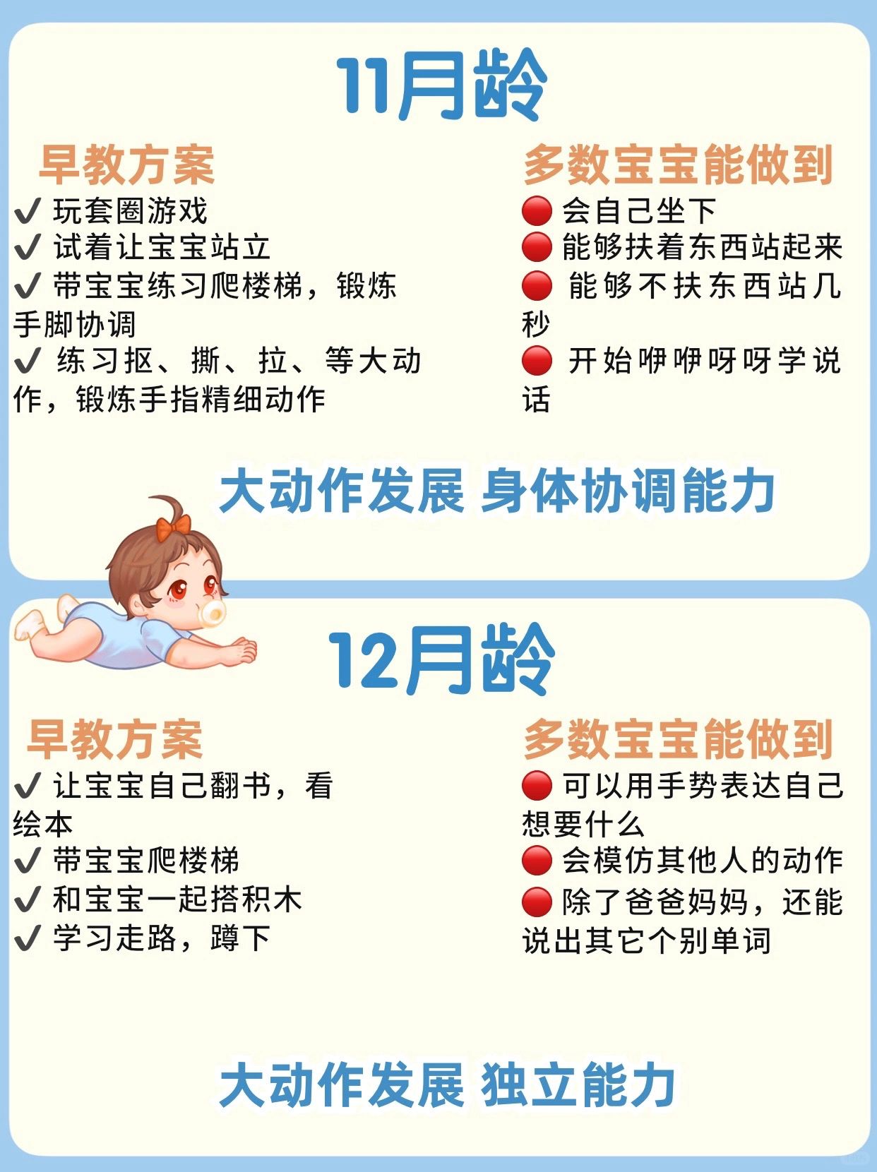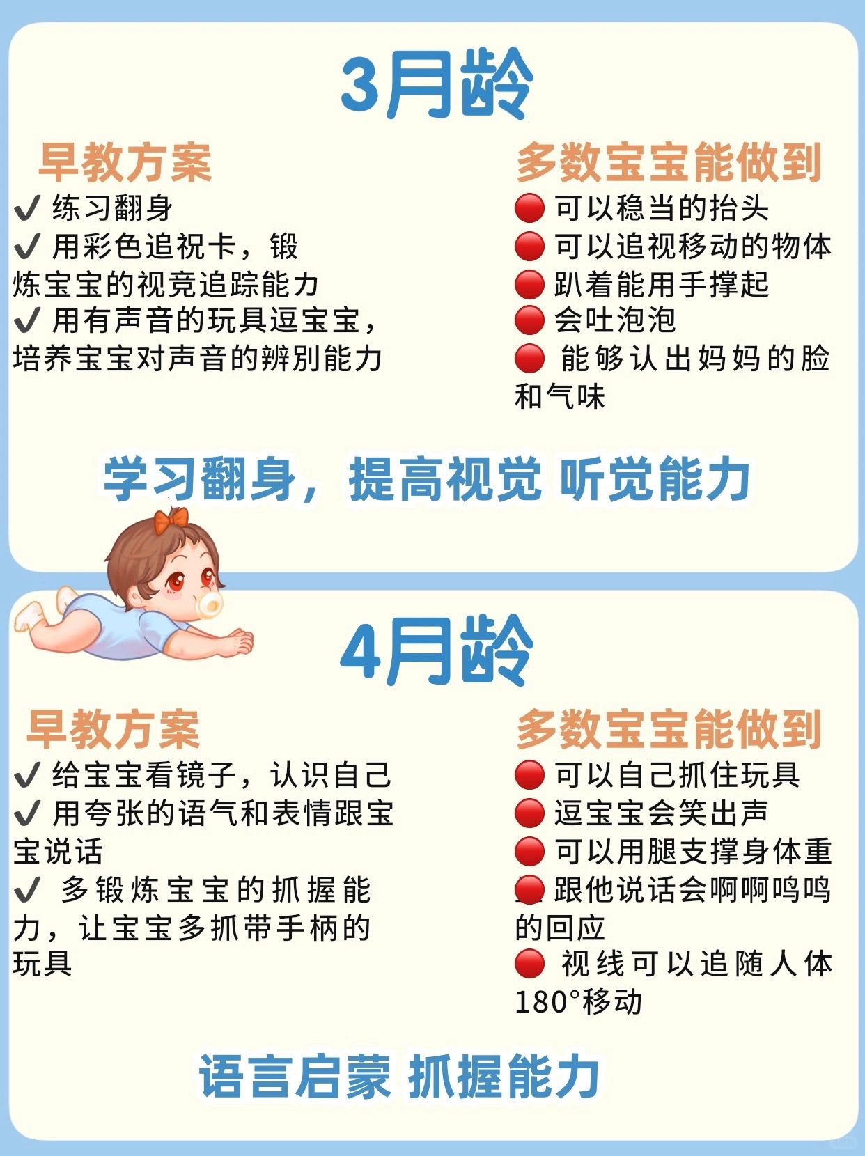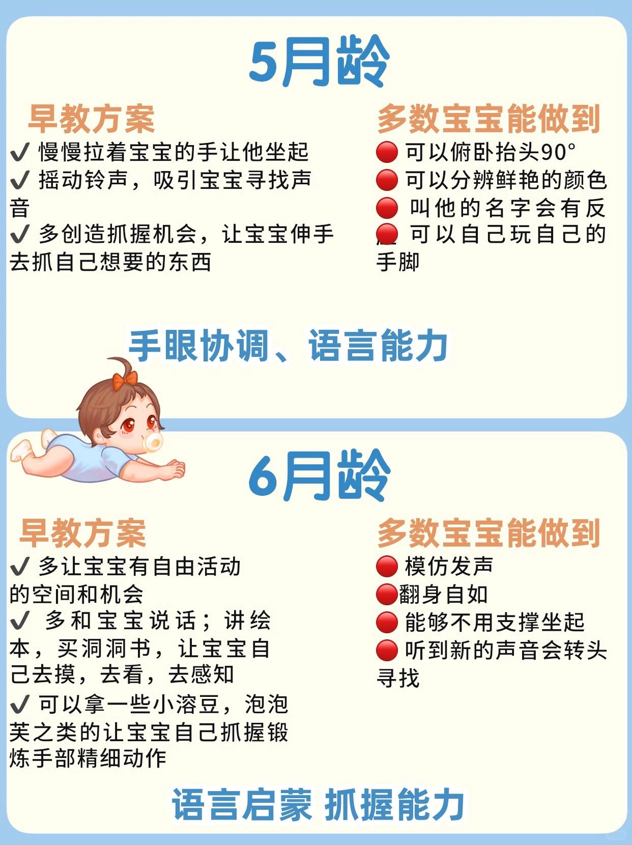 🔥0-12月龄宝宝早教发育方案及进程对照表