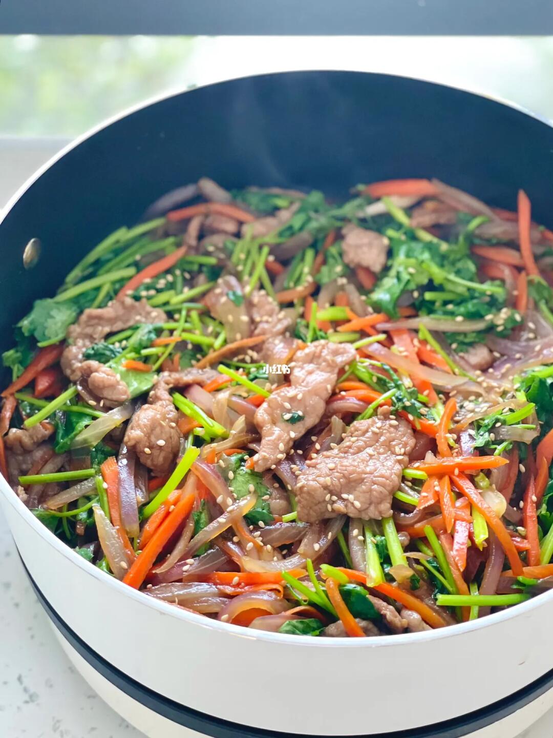 胡萝卜丝|洋葱丝|香菜|牛肉|白芝麻|蚝油|生抽|玉米淀粉|白胡椒粉