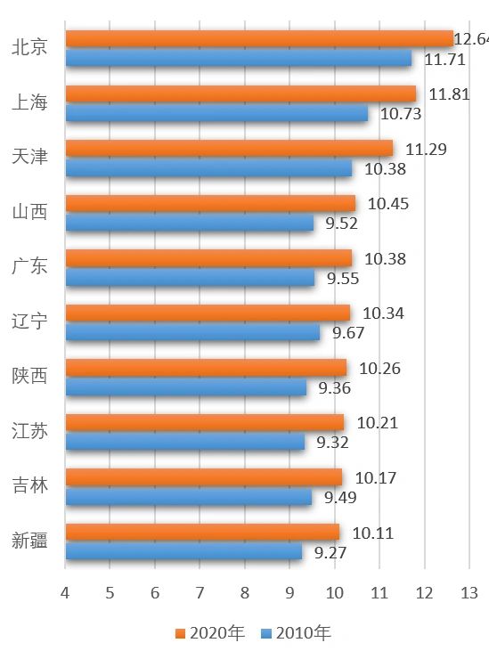 受教育程度最高的三个省级行政区是:北京、上海、天津。