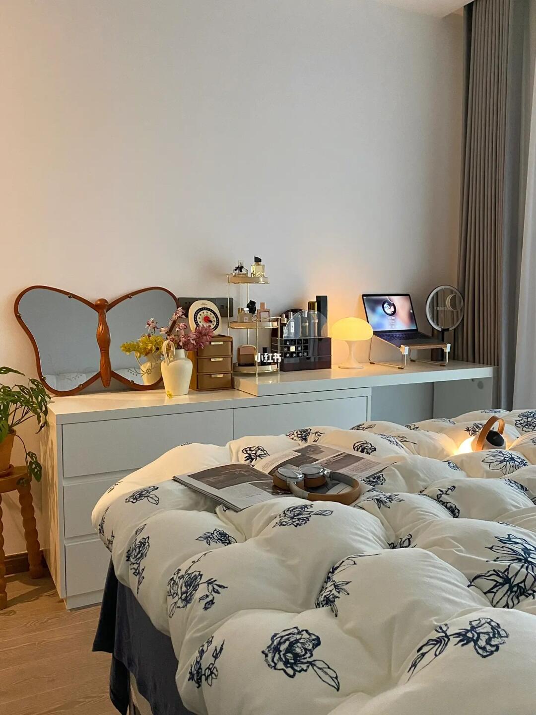 🏷1.1米床尾空间摆放斗柜梳妆台一体完全够用,既能够满足收纳又可以办公和化妆