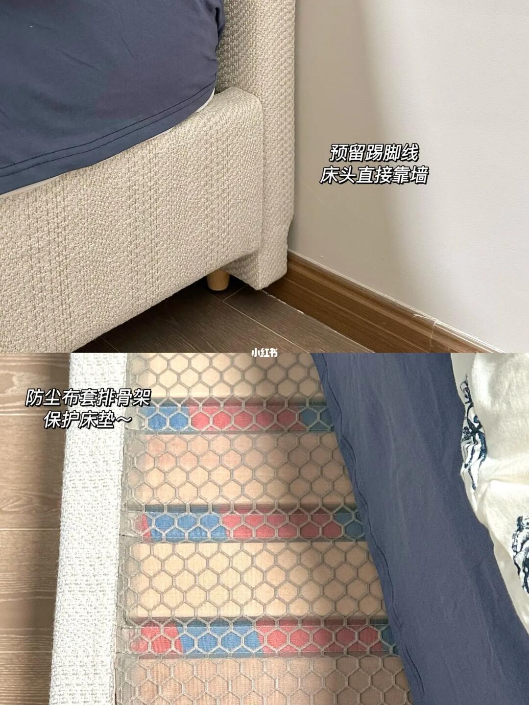 除了颜值我也很注重床的质量。番茄设计家的排骨架是榉木实木搭配双层防尘网罩,可以很好的保护床垫,还可以防尘静音,质量实打实看得见,五金也是加厚的碳素钢,就连来安装床的师傅都说这床质量很不错。