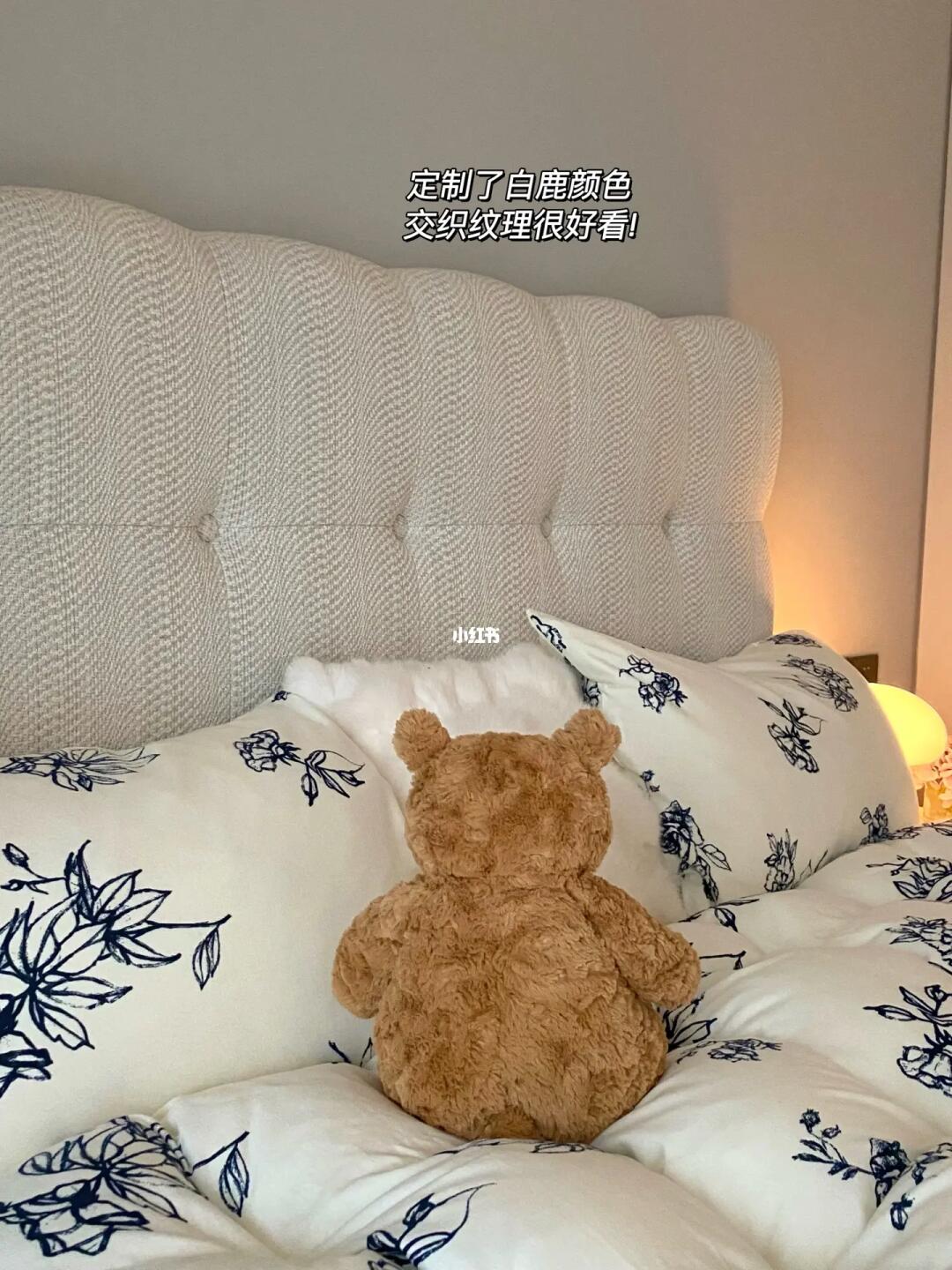搭配番茄设计家的饼干床太好看啦。我选的是它家的白鹿这款布料,他家可以免费邮寄一大盒小样,我对比了小样后最后选中了这款,效果没让我失望,很温柔又高级的颜色~