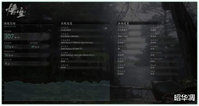 ▼「黑神话悟空」游戏在2K分辨率下影视级画质,全景光线追踪-高,选择开启 FSR ,帧生成:自动,超级采样率 75