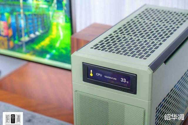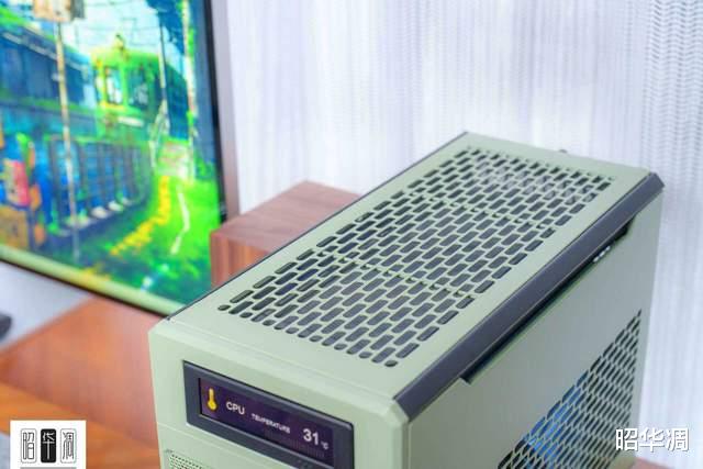 ▼机箱正面视觉效果 十 分清爽,LED 指示灯的设计带有 一 种微妙的复古感。顶部“额头”区域默认是光滑平面,但我这里选择加装了选配的 LCD 面板, 复古的同时也有 一 定科技感。