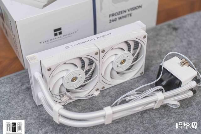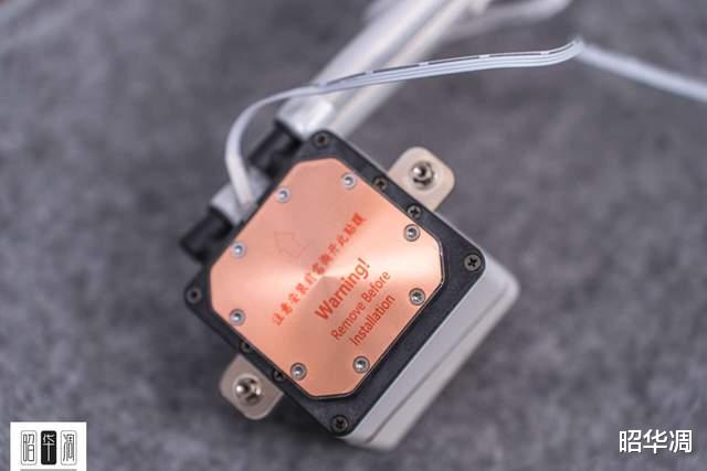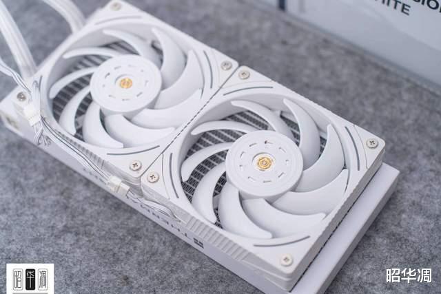 ▼取出水冷本体,可以看到出厂时风扇就已经预装在了冷排上,这种“到手即用”的细节设计非常贴心,大大节省了玩家的装机时间。