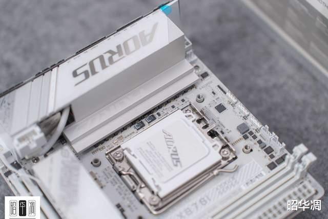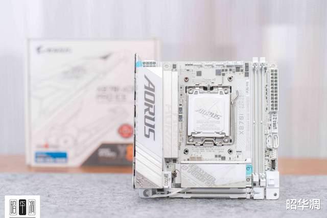 ▼主板是技嘉的 X870I AORUS PRO ICE、纯白配色带 RGB 灯效,8 相供电