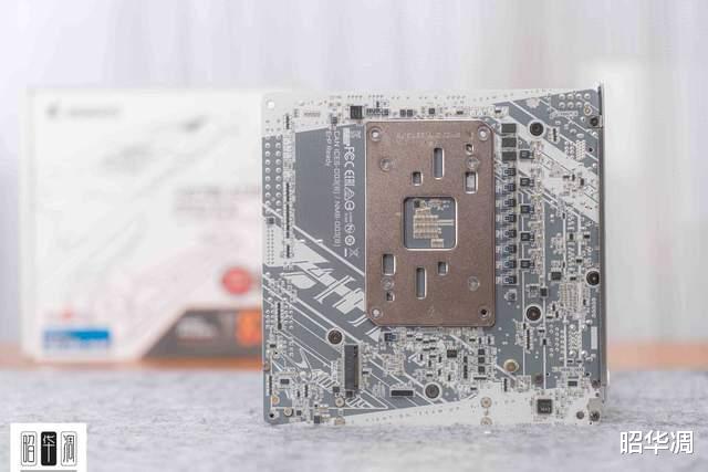 ▼主板背面的设计也毫不含糊,采用了极具质感的灰白撞色涂装,尽显典雅。为了最大化利用空间,主板的第 二 个 M.2 接口被布置在这里,支持 PCIe 4.0 * 4 规格,扩展性得以保证。