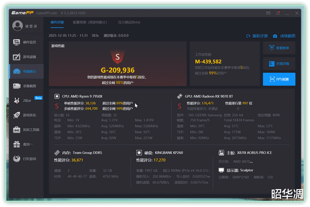 PS:这个分数比 9950X3D + 5070ti 高出接近 1/4.