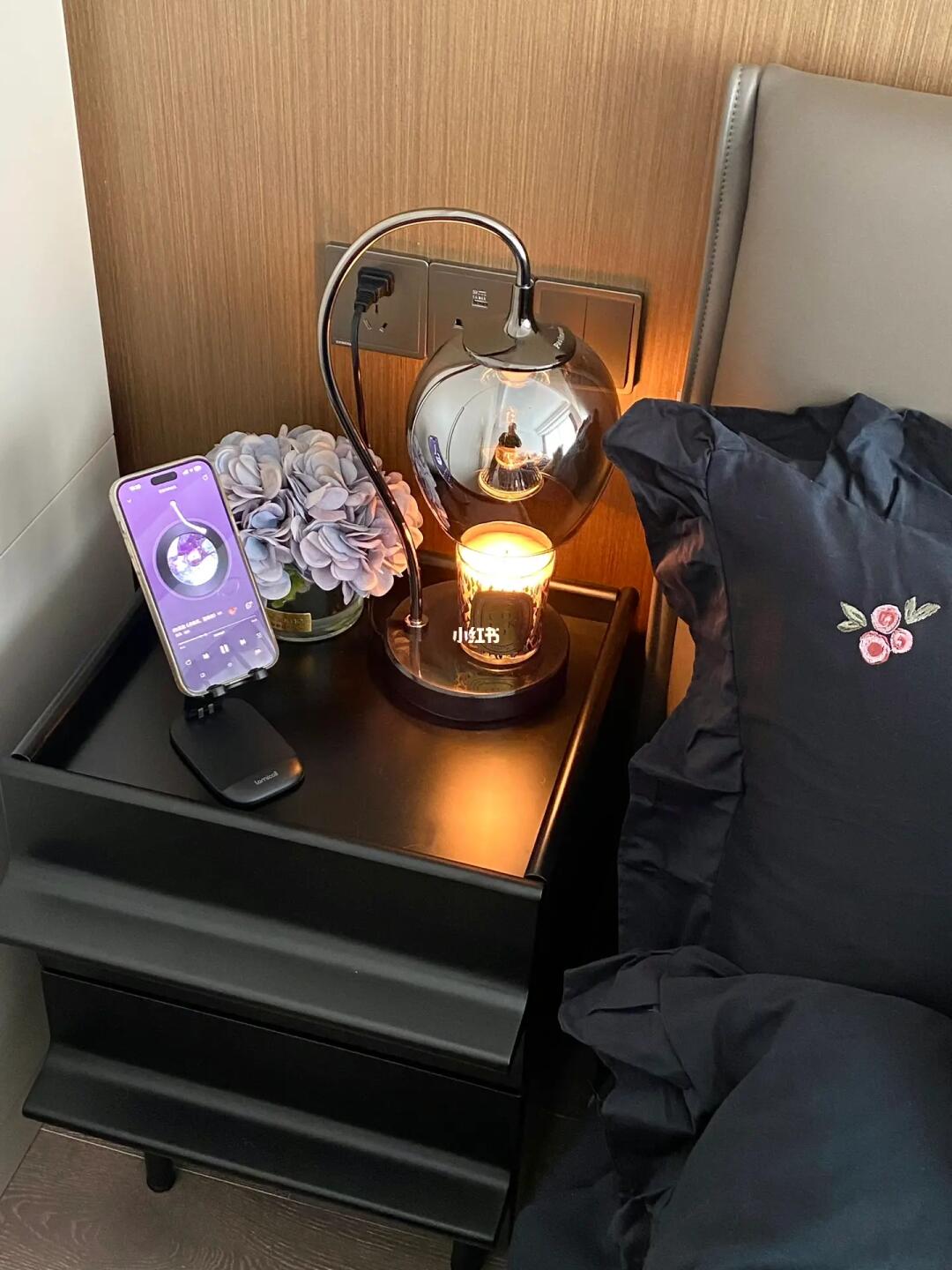 现在晚上就喜欢把柏曼微醺灯摆在床头柜上,不仅是个小台灯,晚上还会自动熄灭,很安心~