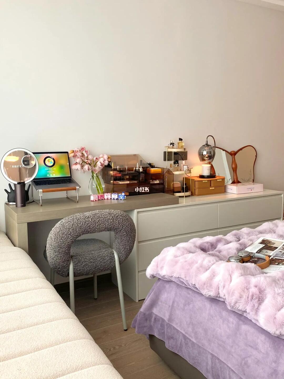 1.2米的床尾空间一点也不拥挤,还拥有了属于自己的办公化妆桌