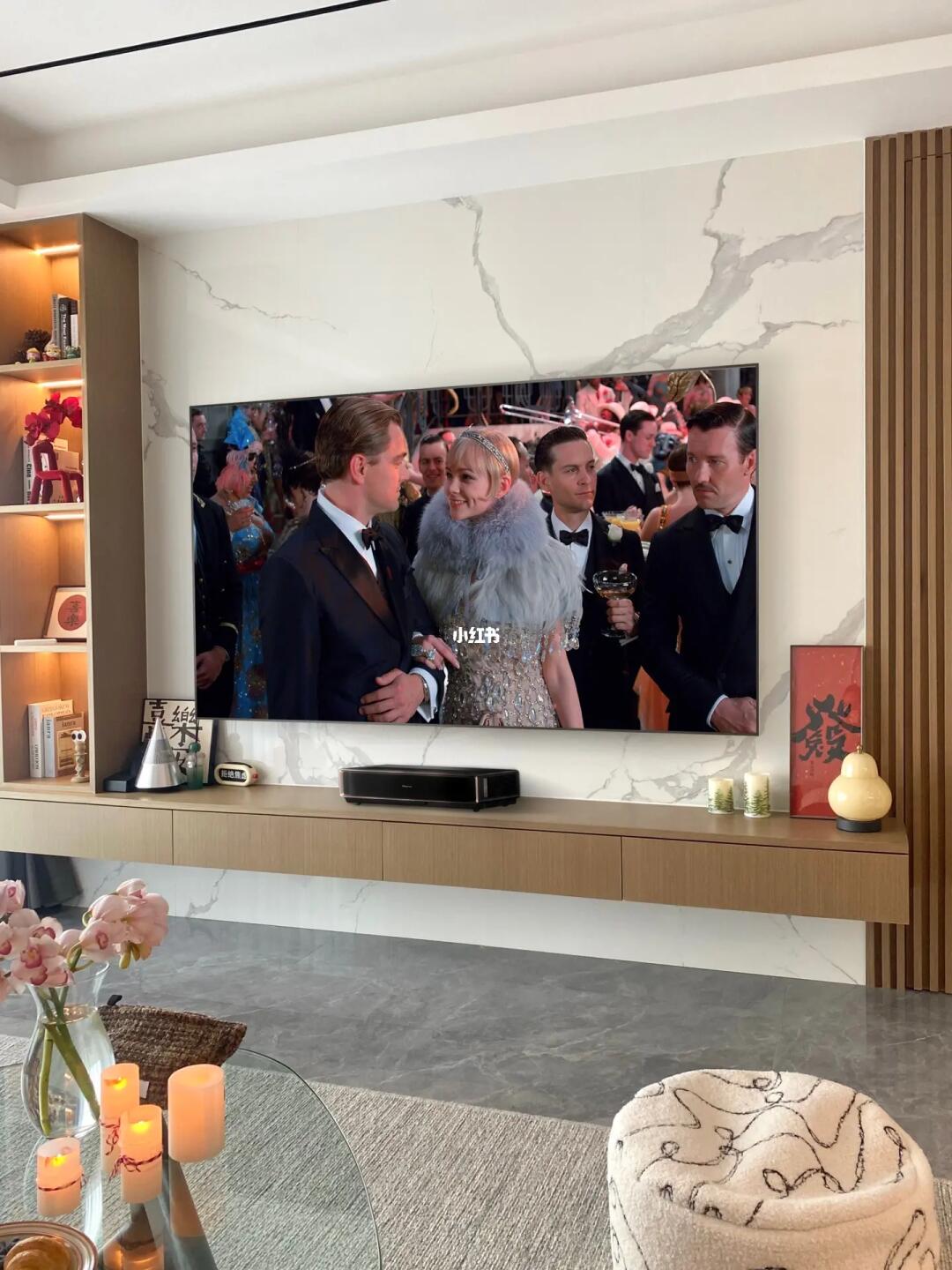 我家客厅开间4米,电视我选的是海信璀璨激光电视L5K,薄至2cm的大屏幕可以折叠、轻松入户,后期安装也不影响~