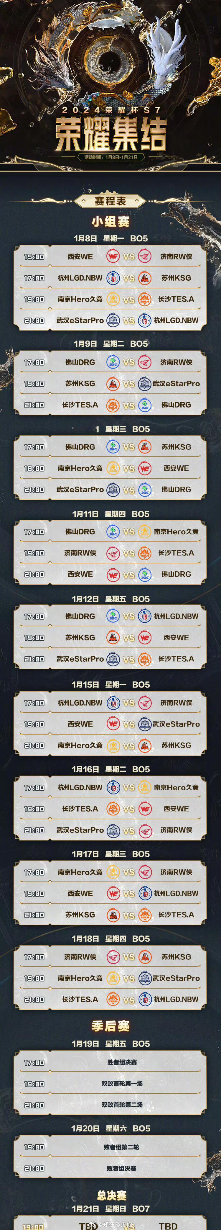 1月8日-1月21日,8支KPL职业战队集结,12个比赛日,2024荣耀杯即将开赛!
