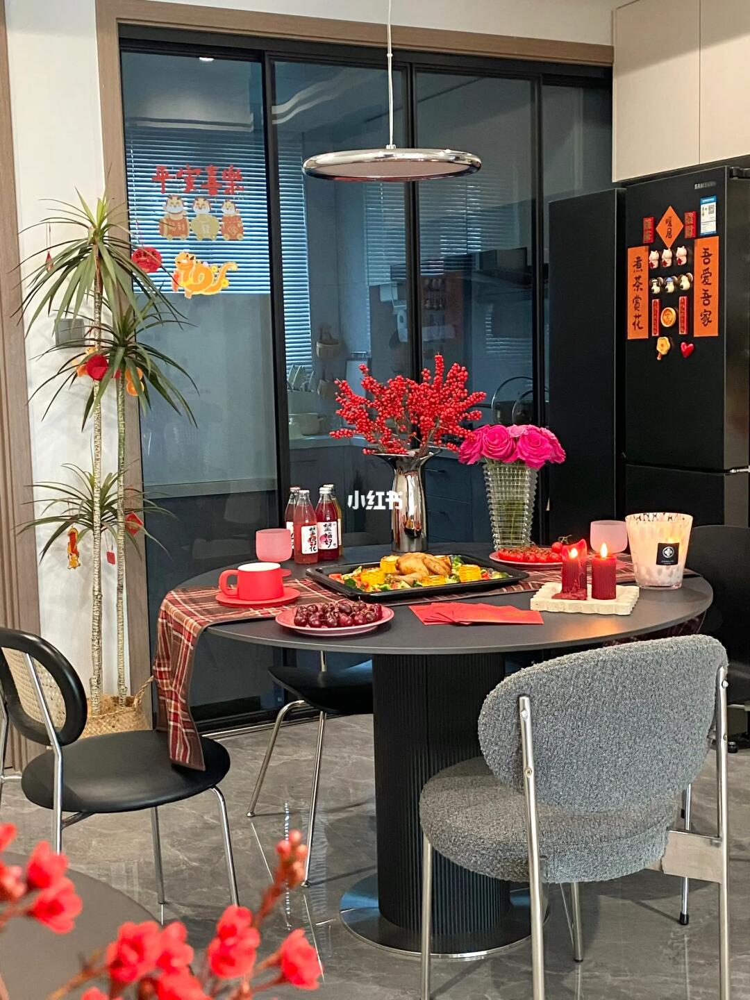 ⚫8平米小餐厅空间有限,放1.2米黑色小圆桌不仅够用,也很高级~