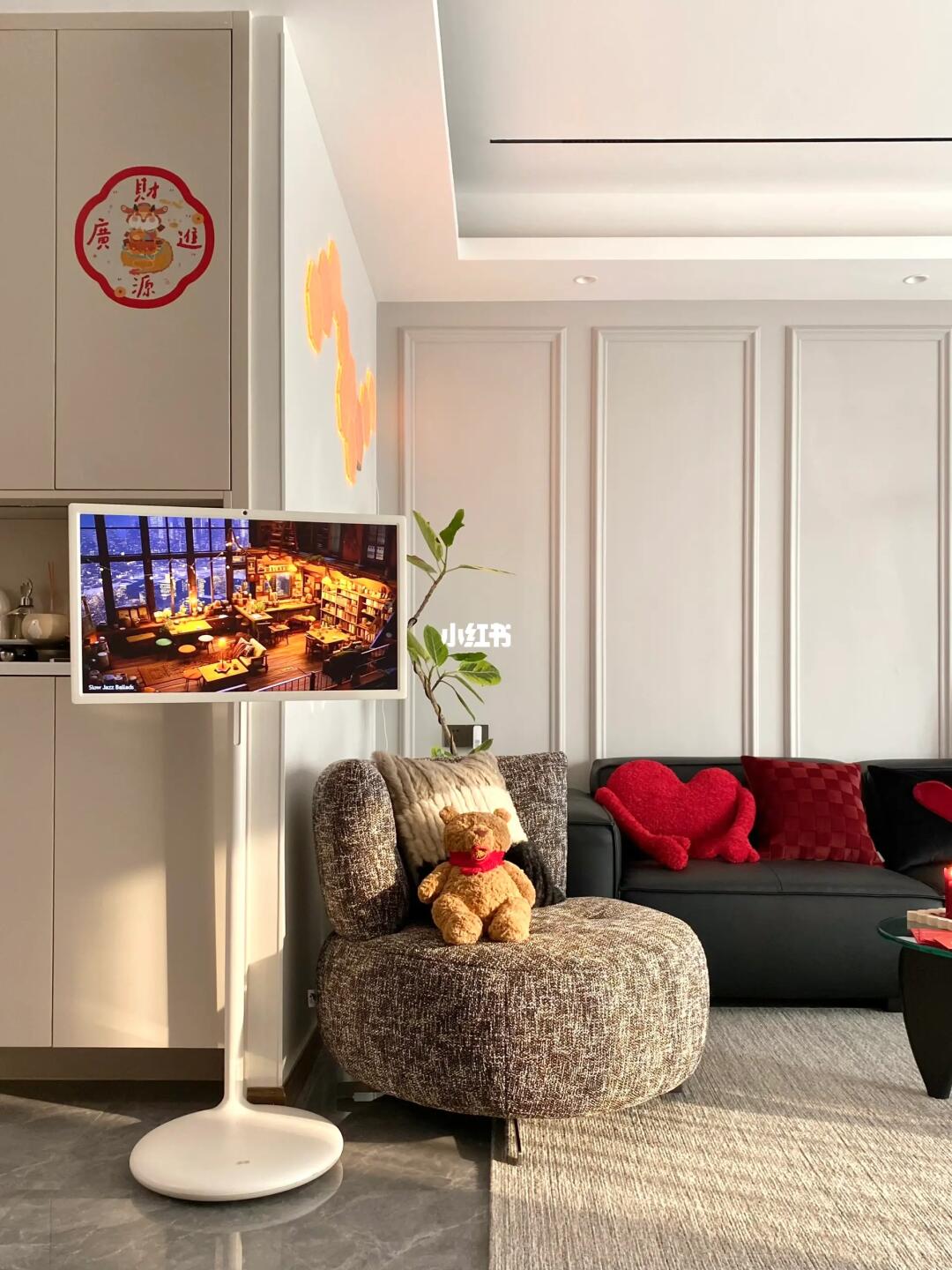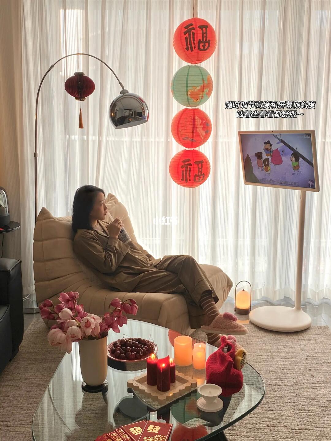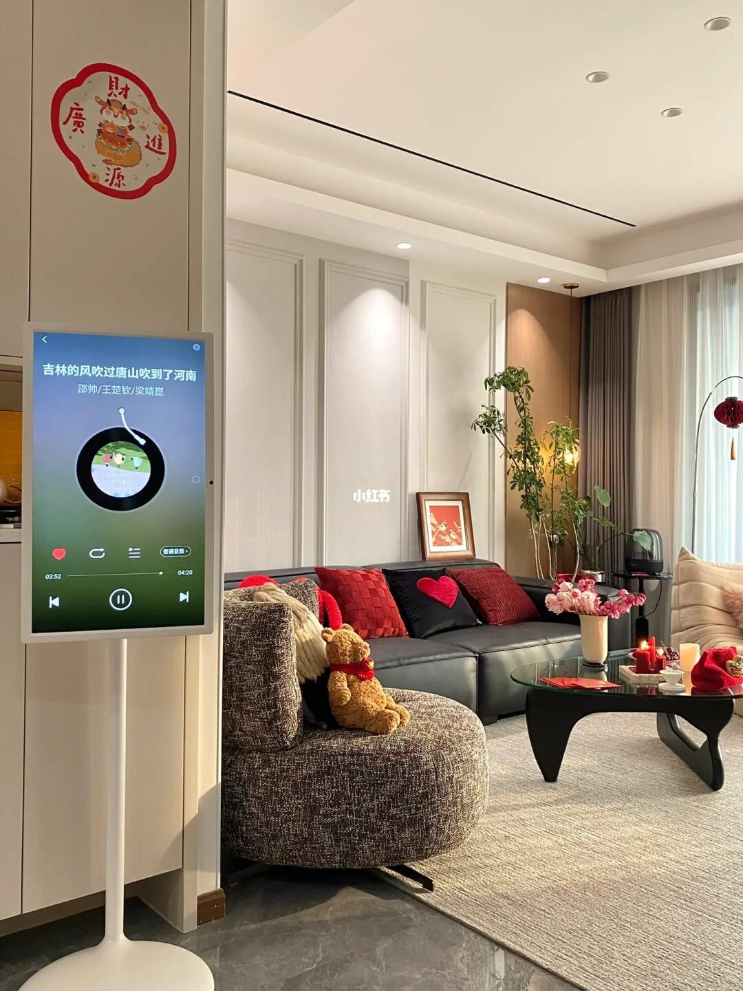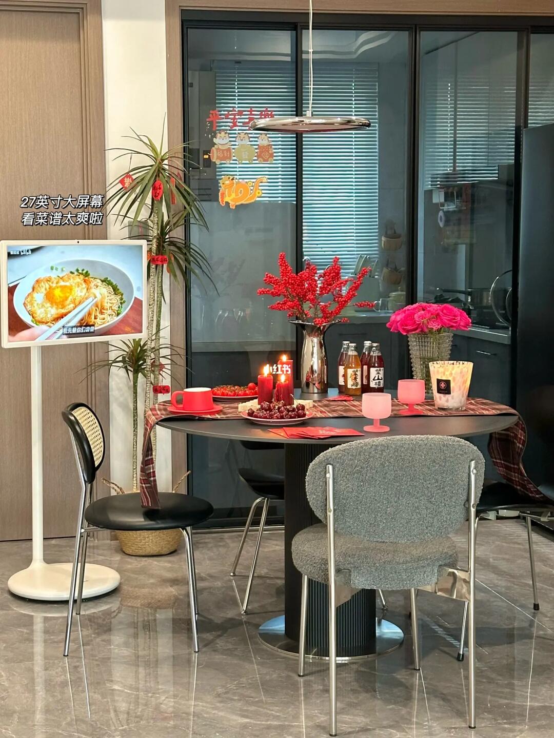 做菜的时候看看菜谱,平时沙发旁边看看电视听听歌,餐桌旁看下饭综艺,睡前推到卧室看电影,真的太幸福了~