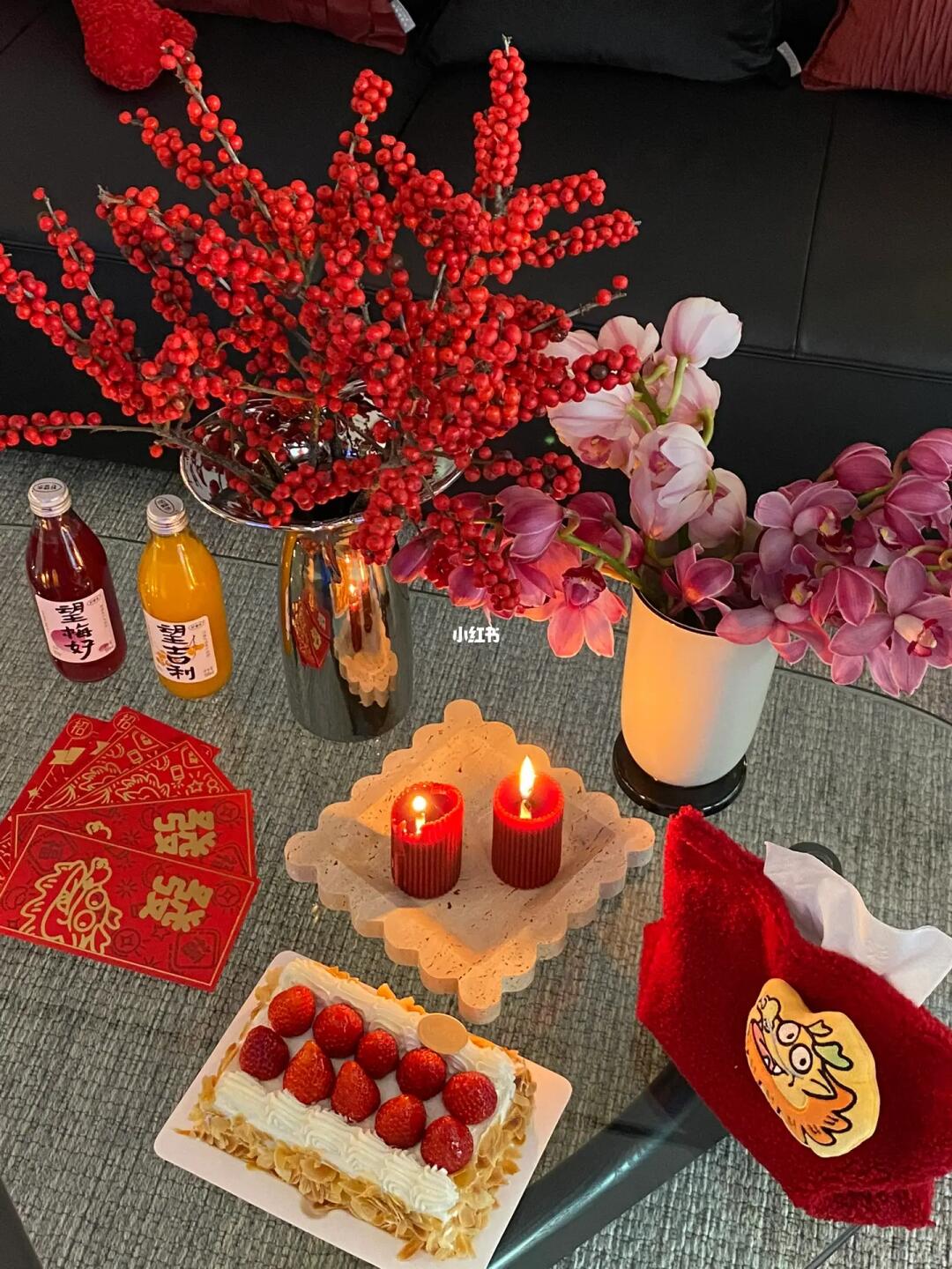 快过年啦,挂上灯笼,换上红色的软装 小家越来越有年味啰~ 周末和小姐妹宅在家里 点了喜欢的香薰,Macke草莓拿破仑蛋糕🍰莓恋真是心头爱 大颗草莓很新鲜,超级好吃 不愧是草莓季限定 赶紧冲 越来越期待过年啦,提前祝姐妹们新年快乐!