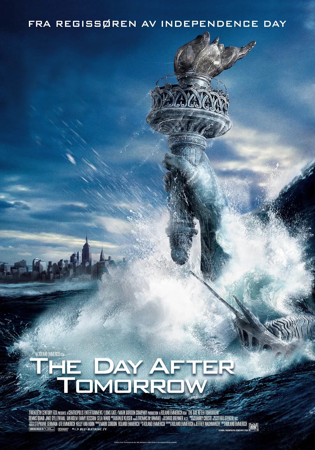 电影主要讲述了温室效应造成地球气候异变,北半球因温室效应引起冰山融化,地球进入第二冰河期,龙卷风、海啸、地震在全球肆虐,整个纽约陷入冰河的包围中的故事。电脑特技制造出了一幅惊心动魄的末世景象,影片的色调随灾难类型变化呈现出富有层次的过渡,给人一种强烈的视听震撼,经典的灾难片。