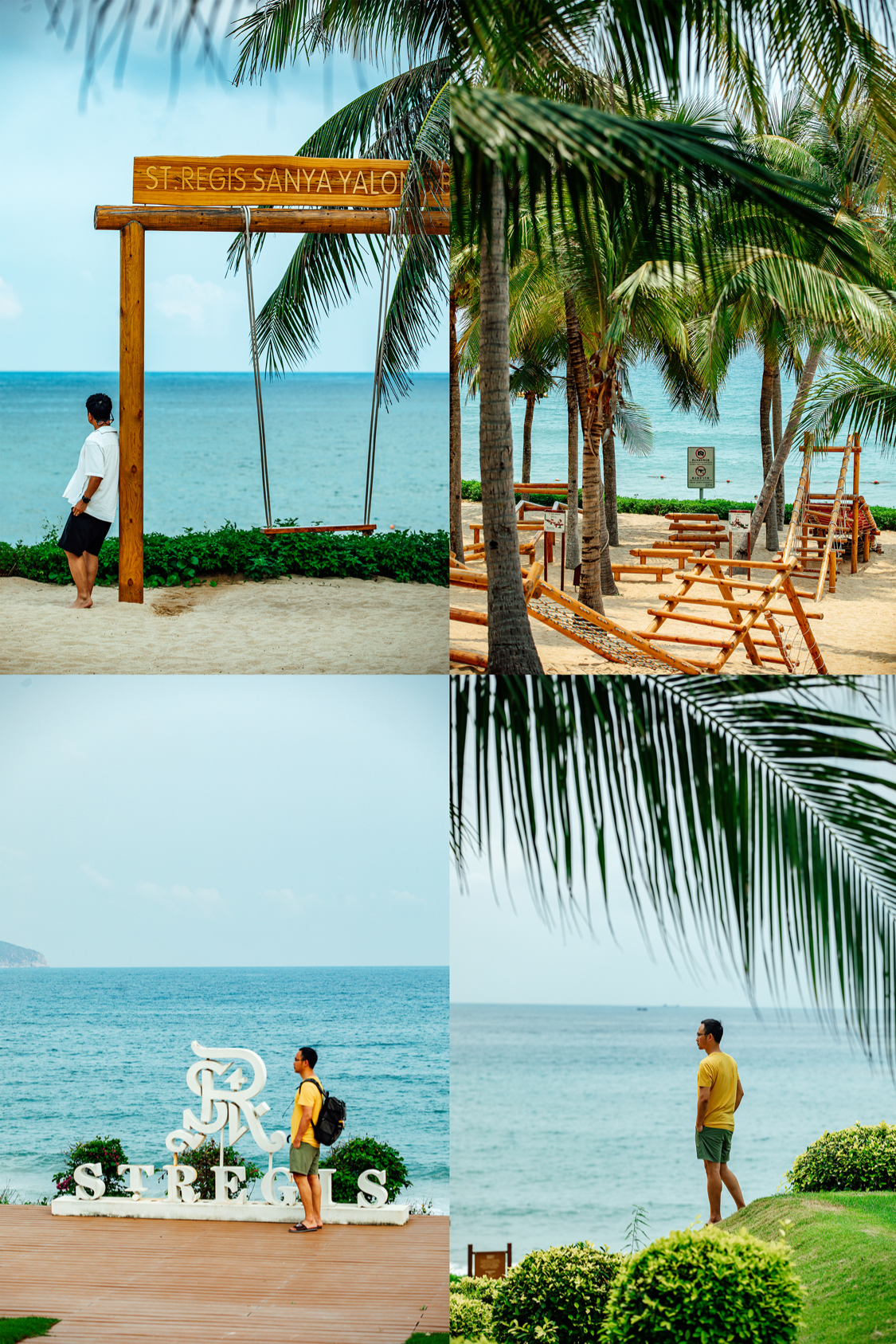 三亚亚龙湾瑞吉的沙滩,是这一带最好的沙滩,分为两层,上面一层是酒店私家的沙滩,位置高于下面的公共沙滩,位置高带来的好处,是拍照可以容纳更美的海景。在酒店沙滩躺椅区的两侧,酒店还新增了不少游乐设施:有滨海彩虹乐园,位于中央透明恒温泳池的西侧,里面拥有丰富的亲子娱乐设施, 彩虹滑道、椰林攀爬、椰林海上秋千等。
