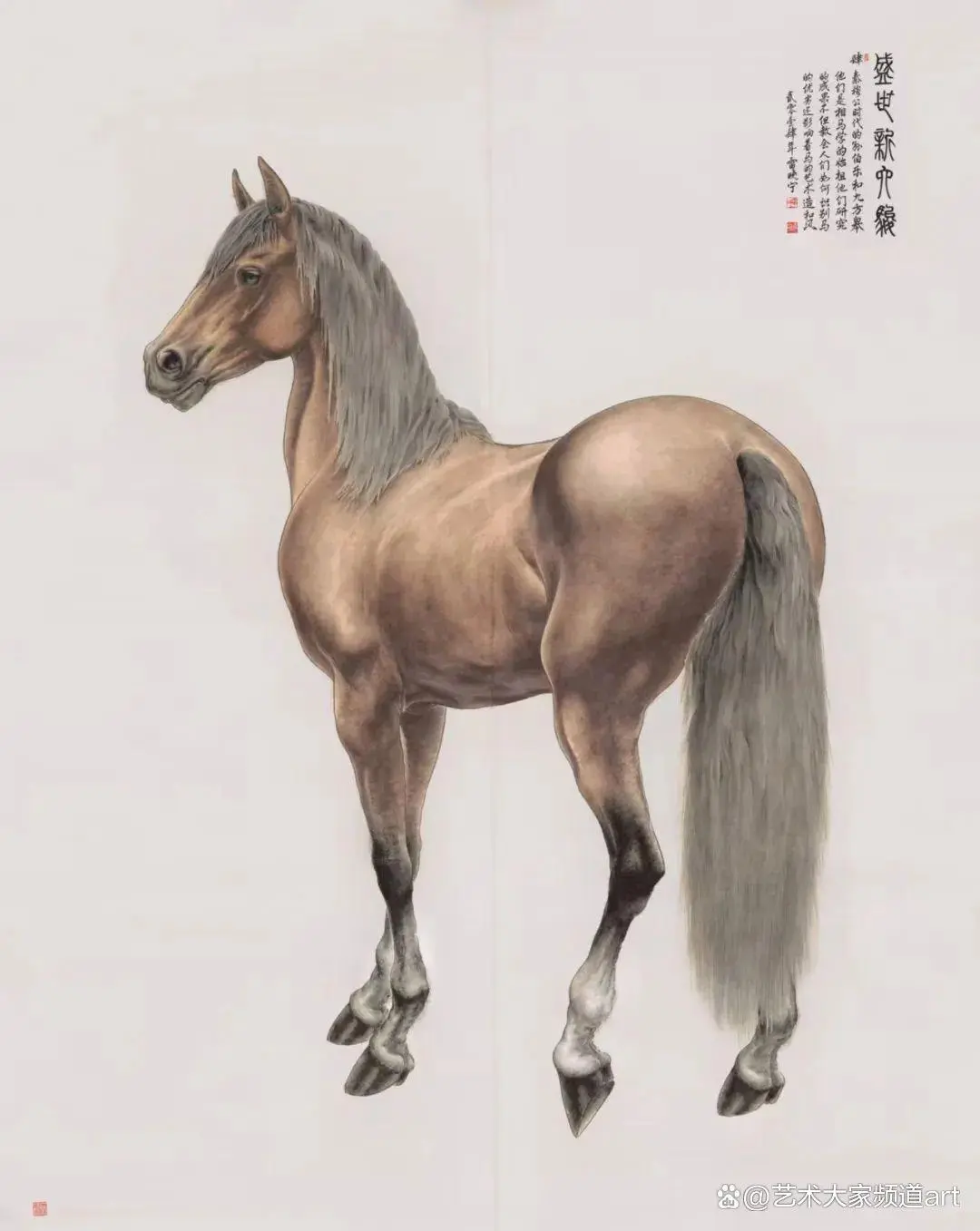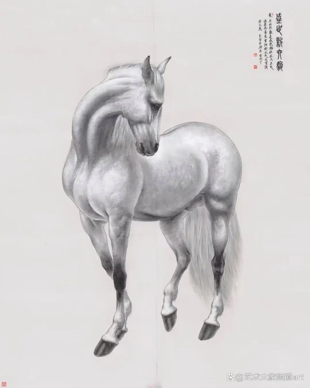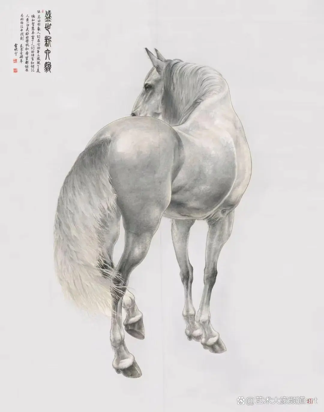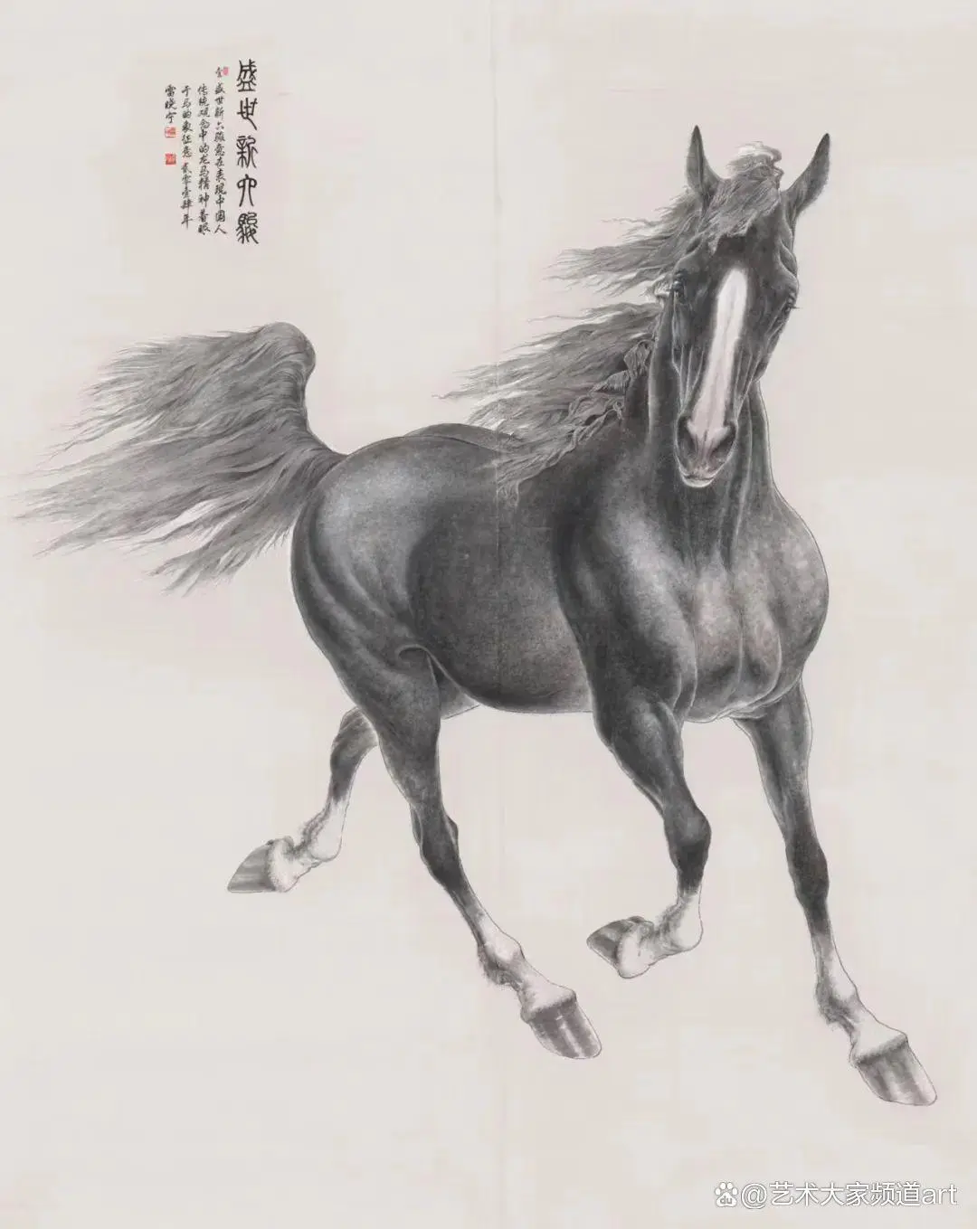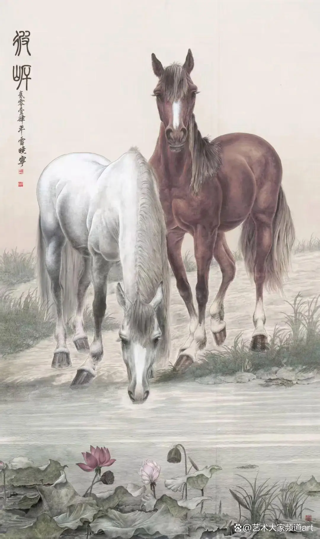 雷晓宁的巨幅新工笔画《盛世新六骏》等十幅巨作,画坛和社会赞曰:雷晓宁的工笔马高贵,典雅,为皇宫御马,雷哓宁先生当之无愧的是当代宫廷大画师“郎世宁”。