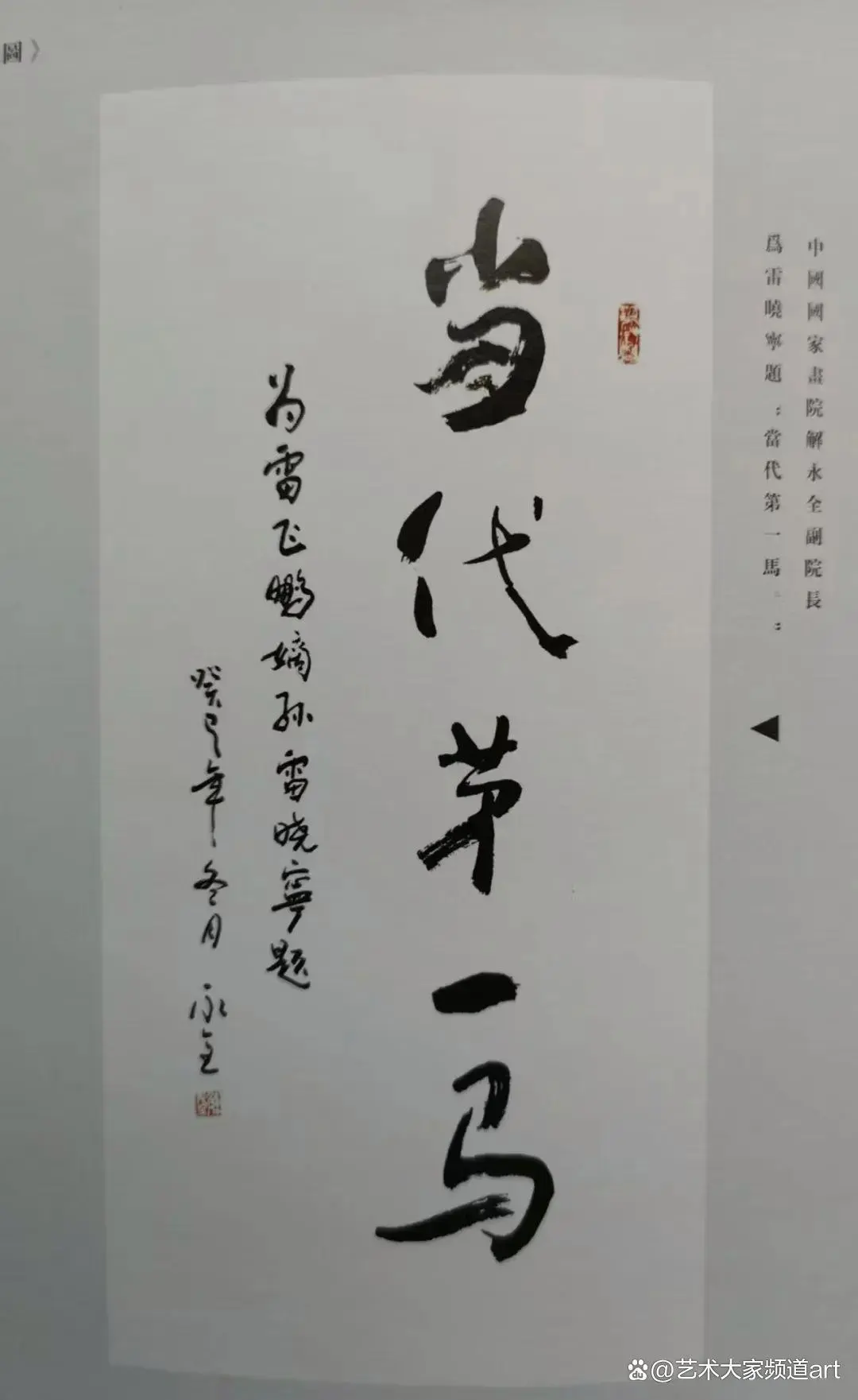 画家雕塑家雷晓宁的艺术成就是多方面的尤其画马艺术成就非凡,被众多艺术界大咖、各界名人推崇为当之无愧的“当代第一马”,纷纷题词盛赞。当代“金陵画派”领袖人物雷晓宁的恩师亚明先生生前亲笔为其作品题词《形神妙绝》并落上款:为雷晓宁大师题。可见其雷晓宁艺术成就被他的恩师和画界及社会普遍推崇和认可。美术界,文艺评论界,专家教授和各届人士纷纷赞誉雷晓宁先生的大写意画马艺术把当代中国画写意画马推向新的高峰。