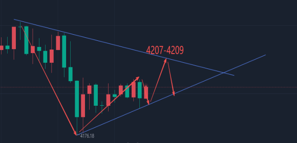 建议反弹到上方4207-4209分批空,止损4219,目标4188-4190;如果弱势下跌到4160-4163附近可以短线分批做多,止损4150,目标4175-4185;如果需要做中长线的朋友建议在4150-4180分批建仓,止损4100,目标4250-4300;(策略建议仅供参考,不构成投资决策依据,交易需严格做好风控,明确设置止损与目标位,杜绝扛单行为,盈亏自负)