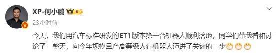 如今,他又在社交平台公开宣布ET1的顺利落地。这份底气,离不开小鹏一直以来的技术积累与体系化能力。