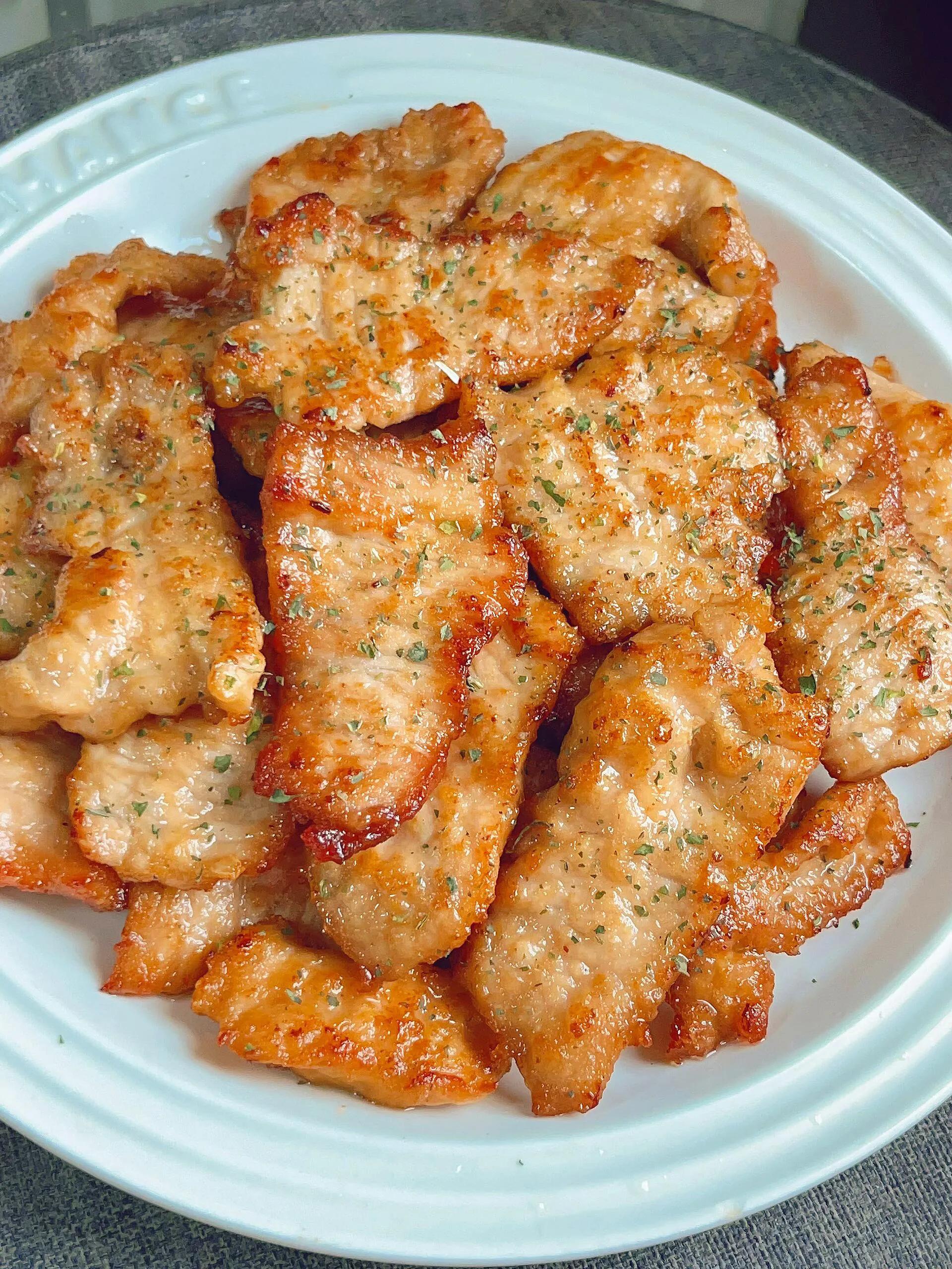 要做出成功的小猪排,选对肉是关键。猪里脊是最佳选择,这块肉质地细腻,没有多余的筋膜。将肉切成稍厚的片,别太薄,否则煎制时容易失水变硬。接着用刀背在肉的两面轻轻敲打,这个动作至关重要,它就像在给肉质做一次温柔的松筋按摩,既能打断部分纤维让口感更嫩,又不会破坏肉的完整,还能让腌料更好地渗透。敲打后的肉片面积会微微扩展,呈现出更蓬松的状态。