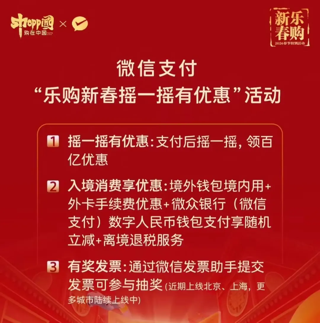 即日起到正月十五,使用微信支付付款,就有机会领到小红包。