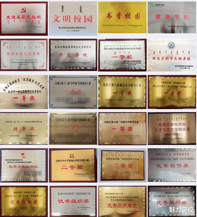 学校先后荣获内蒙古自治区“红十字示范校”,市级“先进基层党组织” “坚强堡垒支部”“无烟单位”“禁毒宣传教育工作先进单位”,东胜区“教体系统先进集体” “文明校园”“书香校园" “健康校园”“人才直接联系单位” “素质教育督导评估一等奖” “国家通用语言文字示范校” “全国中学生科普科幻作文大赛优秀生源基地” “'诵读中国’经典字示范校” “全国中学生科普科幻作文大赛优秀生源基地”诵读大赛一等奖”及“优秀组织奖”等称号。