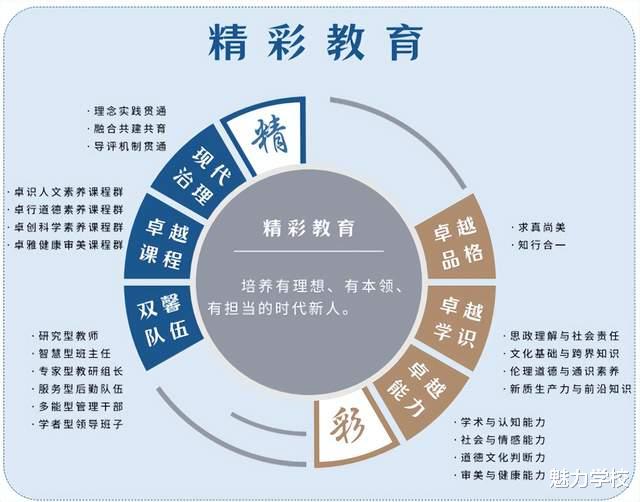 精寓意“追求”,彩寓意“卓越”“精彩”教育旨在通过深化“现代治理、卓越课程、双馨队伍”建设创设优质的教育场域,每位身处其中的师生都向上向真,尚善尚美,不断锤炼卓越品格、厚积卓越学识、锻造卓越能力,不懈追求,绽放生命的精彩。