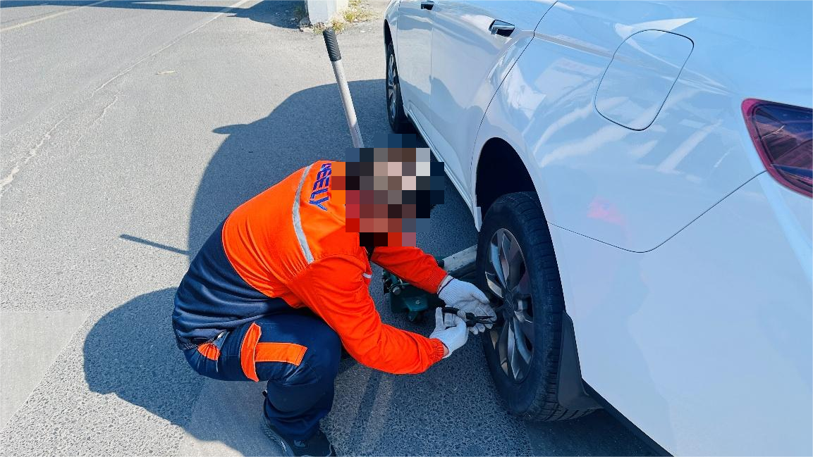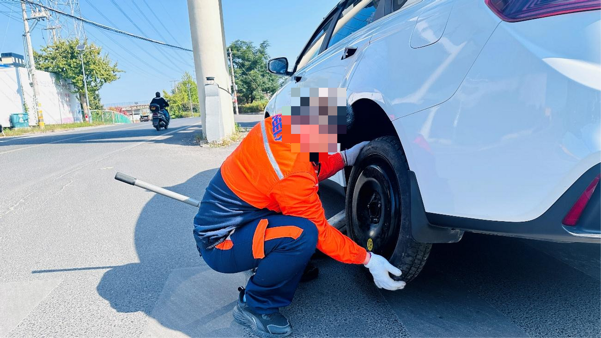 电话那头,服务顾问小林迅速安抚情绪,20秒内完成信息录入与工单派发。救援指令同步传达至值班救援员杨师傅。刚结束上一单任务的杨师傅,毫不犹豫抄起工具跳上救援车,顶着晚高峰车流,仅用20分钟便穿越半个城区抵达现场。随后,熟练地摆放警示牌、拆卸爆胎、更换备胎,动作干净利落。随着备胎换好,张师傅悬着的心终于落地。