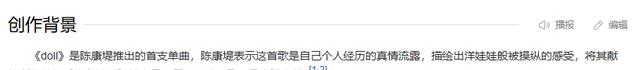 据媒体报道,《doll》单曲由她和制作人Ernest Choi 联手创作,灵感源于他的情感经历。