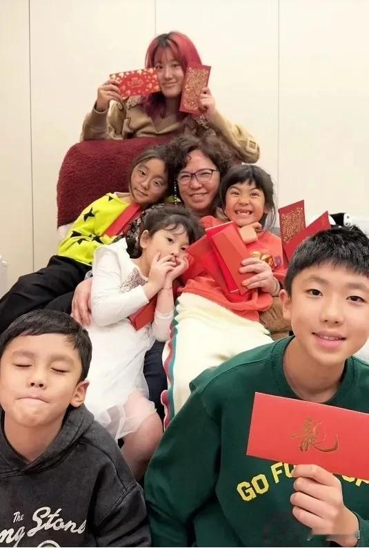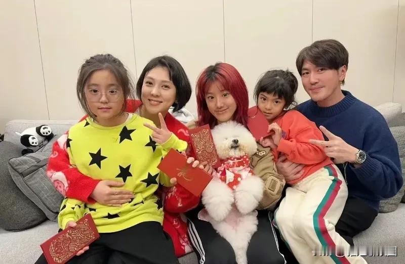 近日,贾静雯在个人社交平台晒出一家春节团聚的照片,大女儿梧桐妹个性十足,戴着鼻环与唇环。8岁布布长得越来越像爸爸,小女儿也长大了,五官越来越漂亮了。