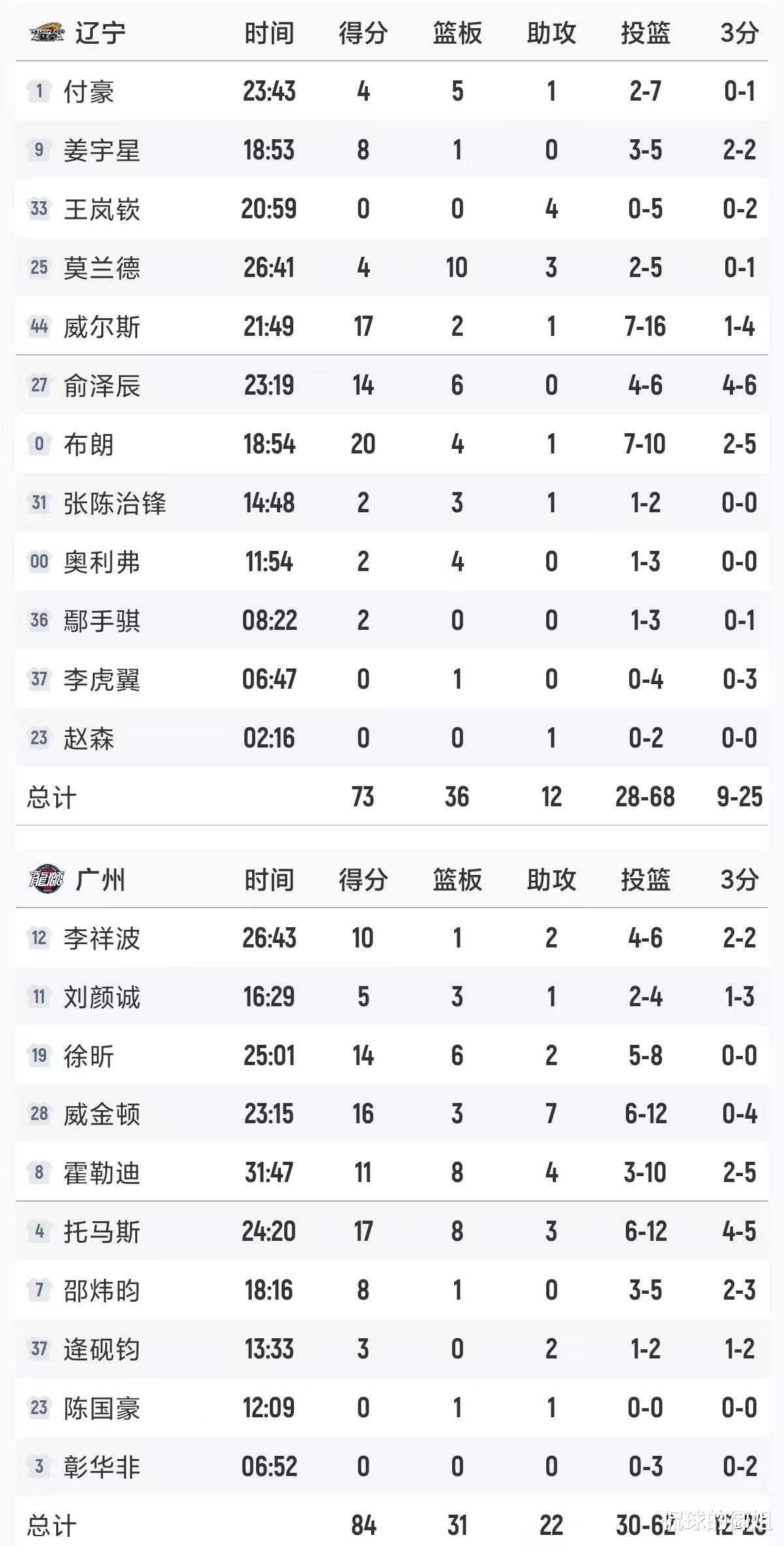 全队16次失误 末节再次崩盘 王岚嵚5中0 辽宁73-84不敌广州!