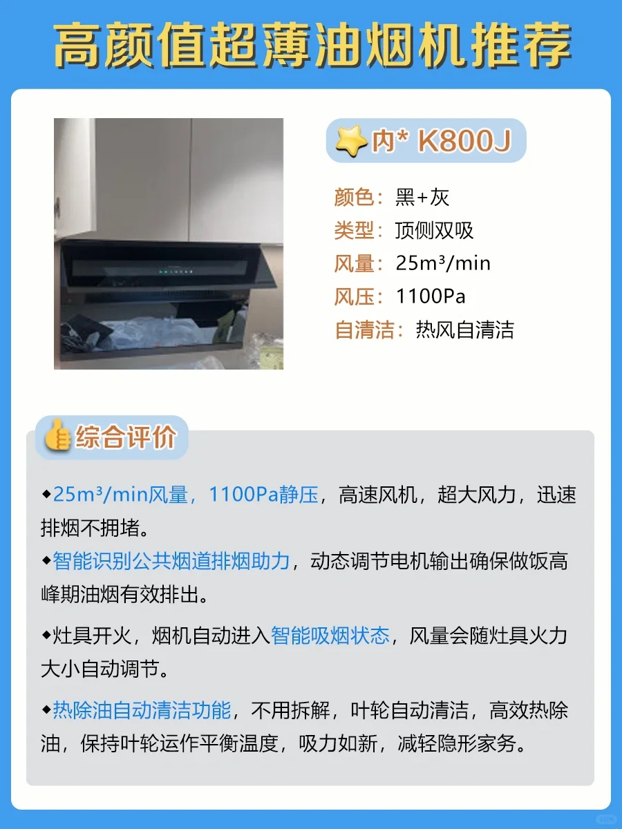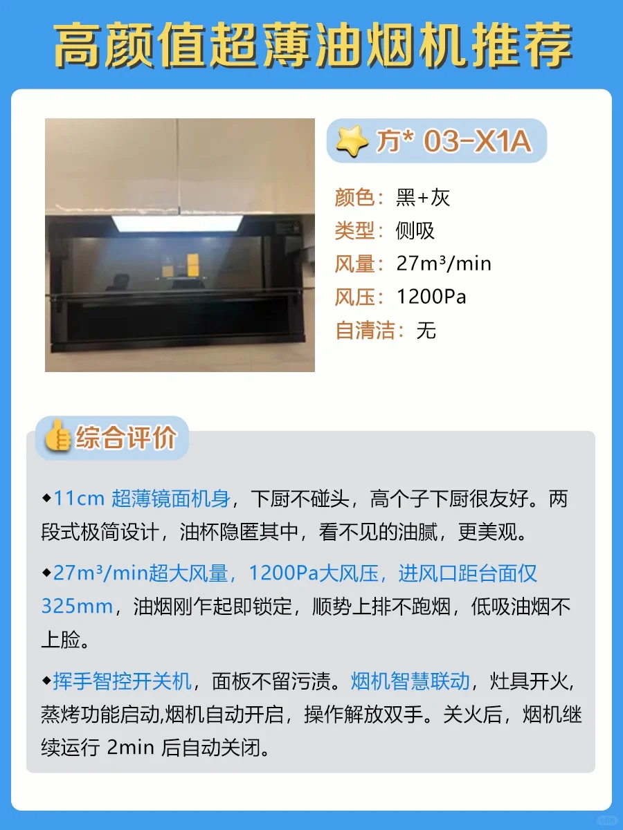 👉🏻给大家介绍4款高颜值超薄油烟机,具体参数可以看图1,评价可以看图5-7,需要油烟机的小伙伴可以参考一下~