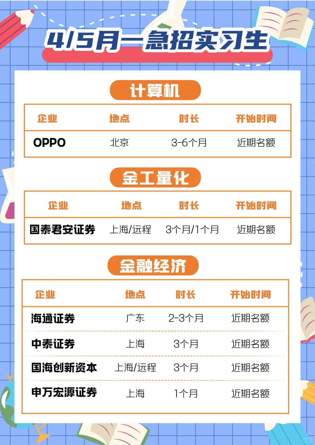 🎉这里给大家整理了一些近期国内大厂的高含金量实习,各种专业都有哦😜!不过仅限在校生哟~