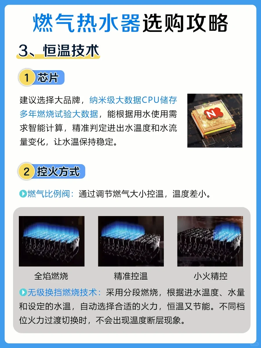 选择大品牌,纳米级大数据CPU储存多年燃烧试验大数据,能根据用水使用需求智能计算,精准判定进出水温度和水流量变化,让水温保持稳定。