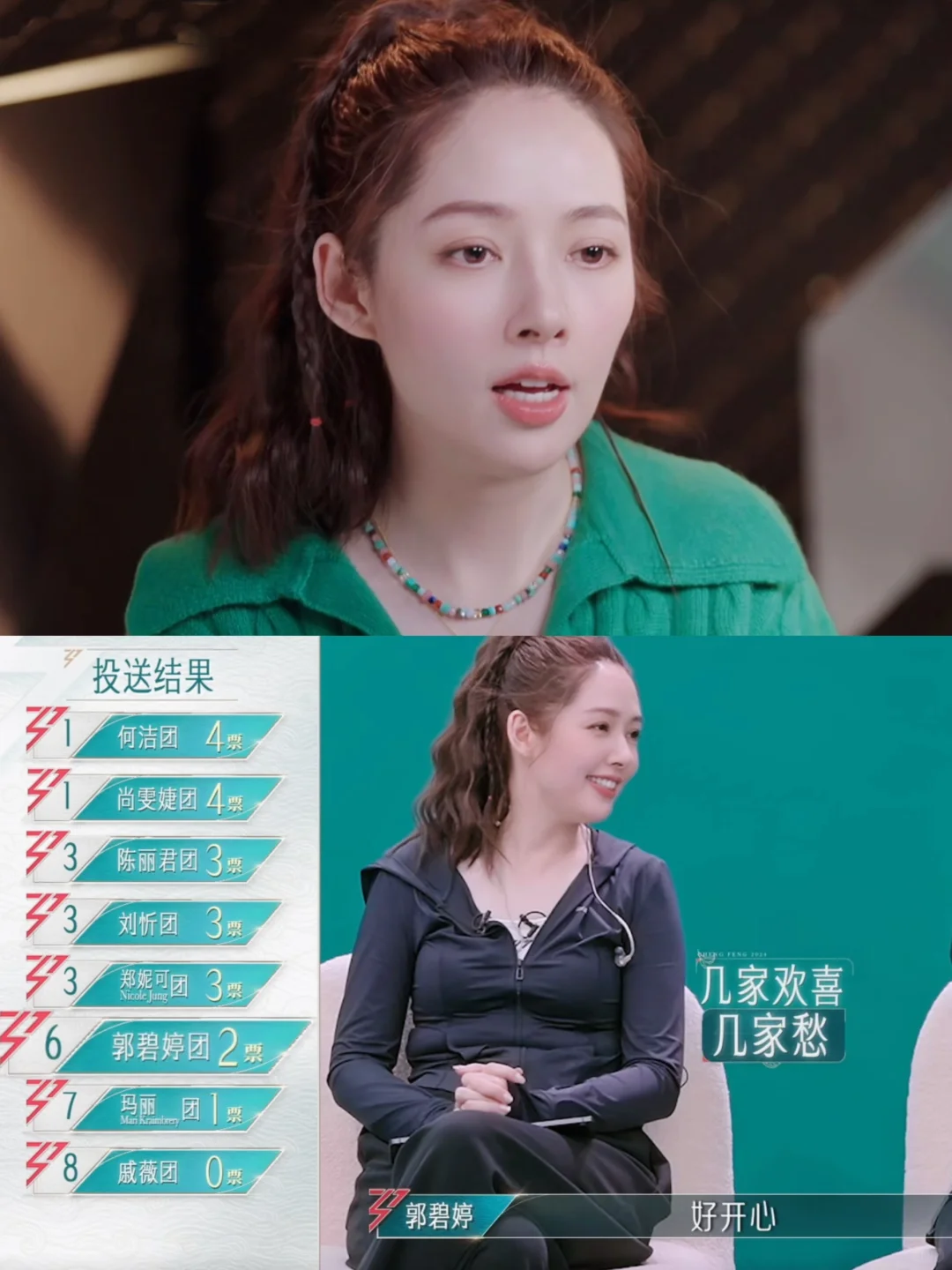 仅仅比出了舞台表演事故的戚薇组零票成绩略好一点点,但郭碧婷显然已经很满意,挺有意思。