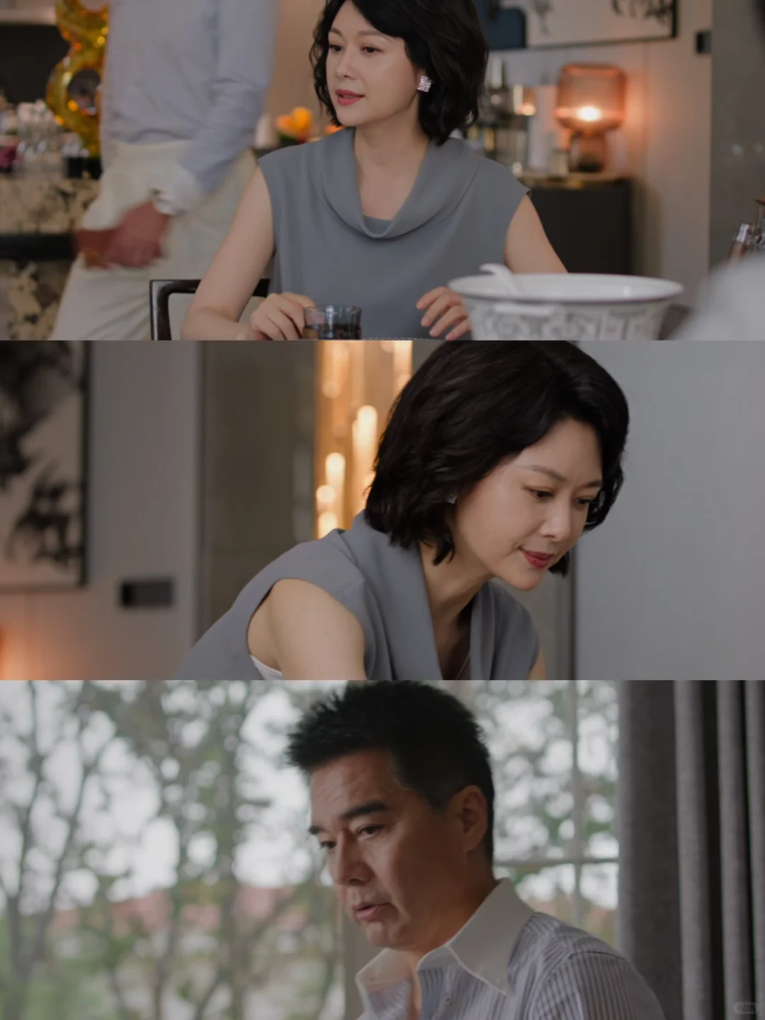 后续剧作借小三之事挑开她的悲凉,老公心虚外加打探、一句“以后晚上都回家吃饭”就让一向镇定的她喜形于色,可见金屋长凄冷、岁月寒、人薄情