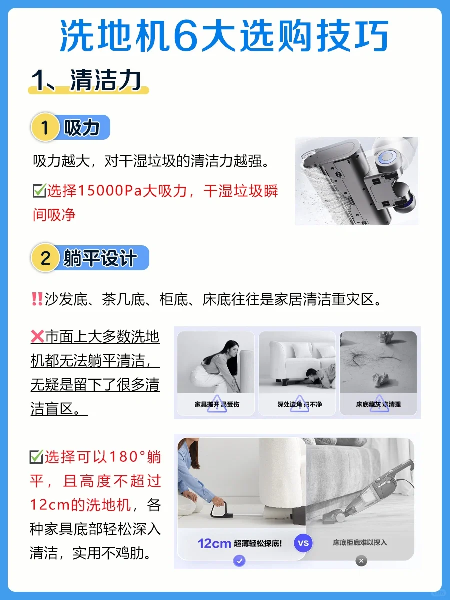 👉🏻但是洗地机别瞎买,厨房餐厅边边角角能贴边清洁+躺平设计+自重轻,才是妈妈们的王炸,这样的洗地机连孕妈都能轻松使用,下面就来看看选购注意事项吧!