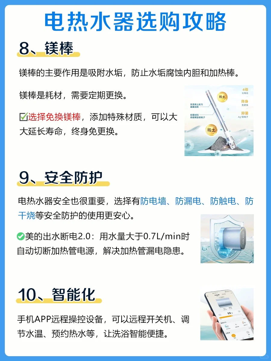 ✅选择免换镁棒,添加特殊材质,可以大大延长寿命,终身免更换。