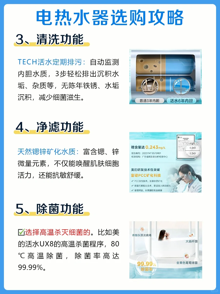 TECH活水定期排污:自动监测内胆水质,3步轻松排出沉积水垢、杂质等,无陈年铁锈、水垢沉积,减少细菌滋生。