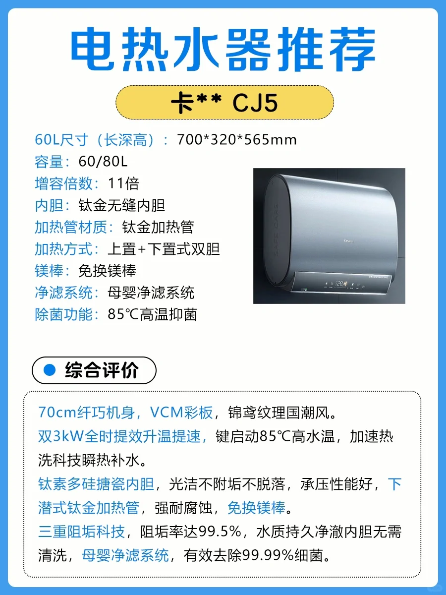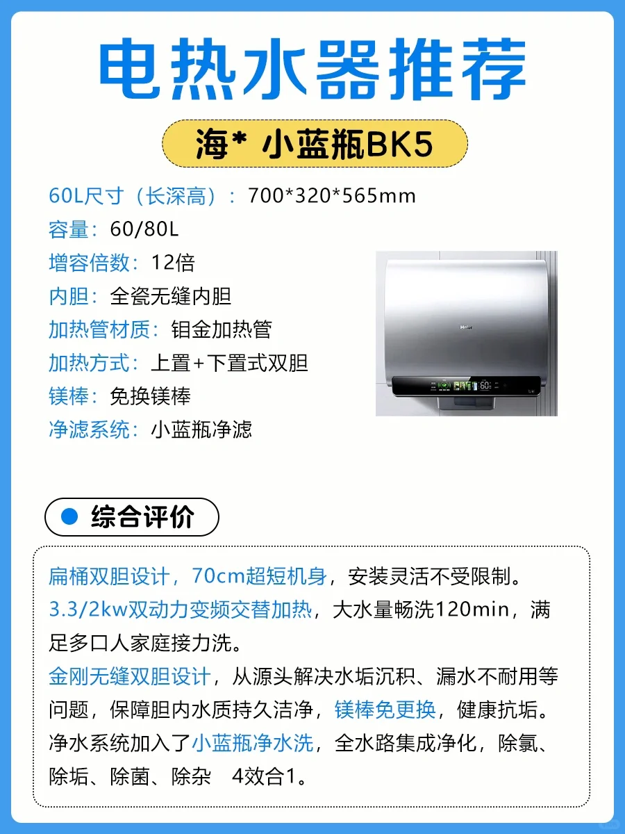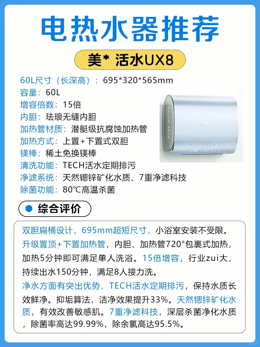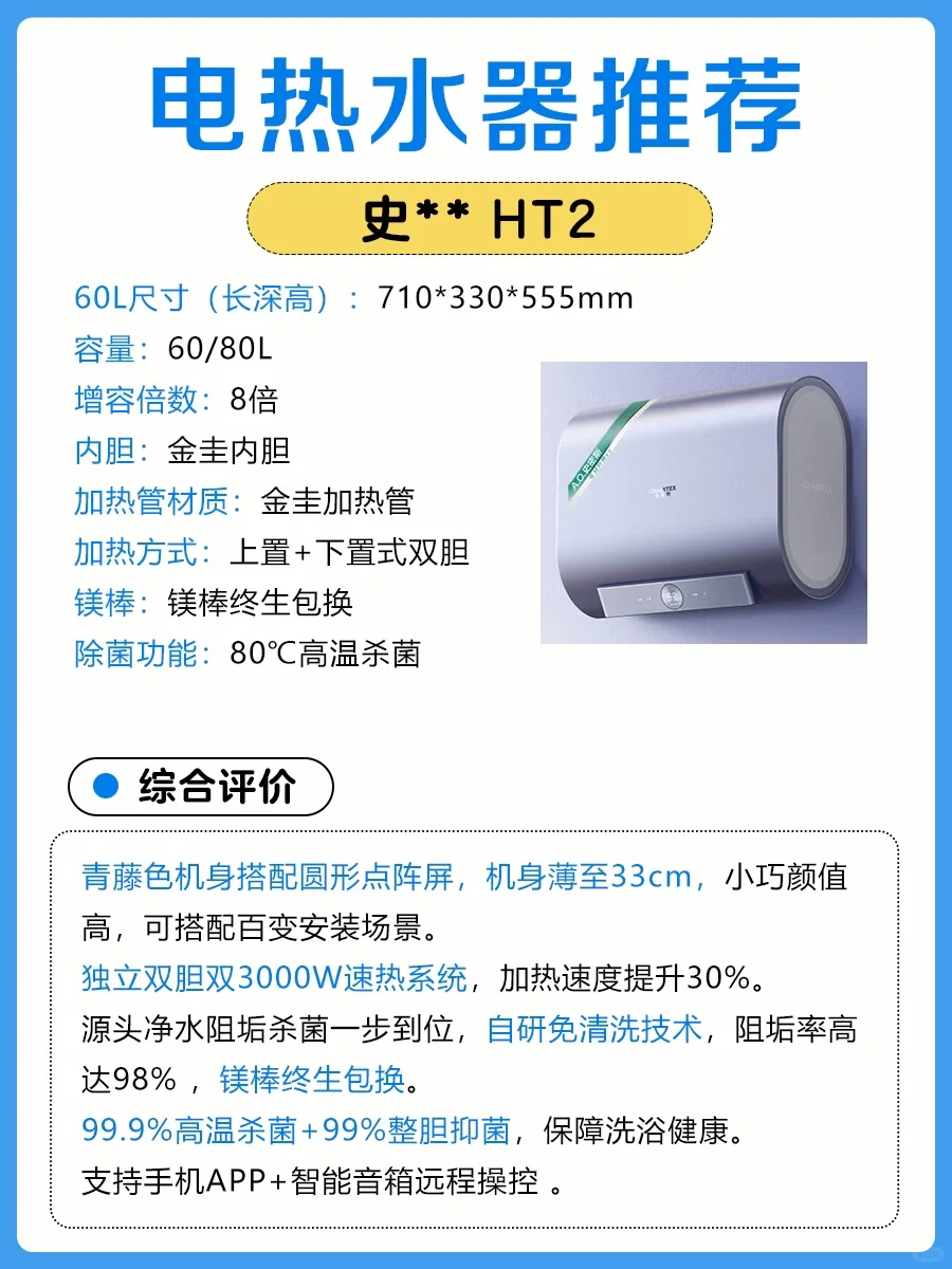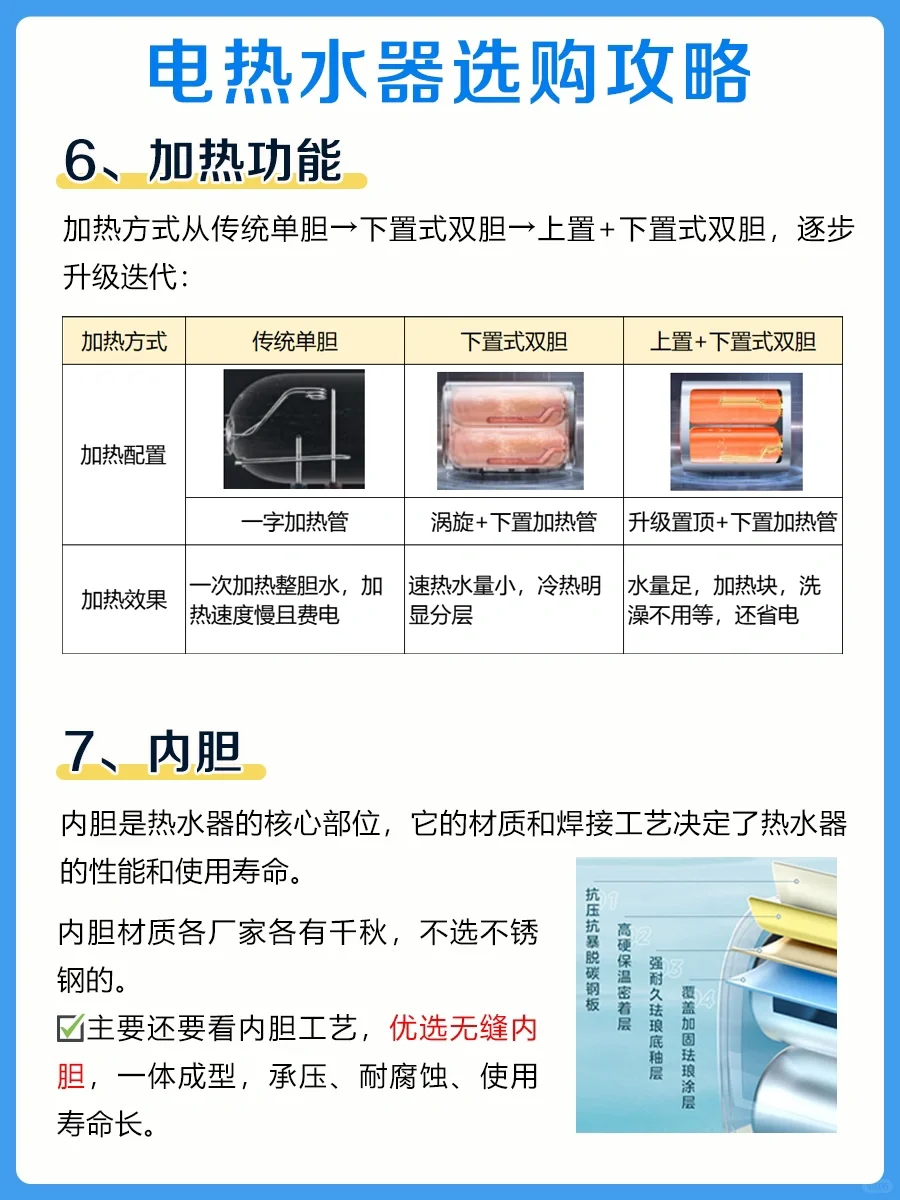 ✅选择上置+下置式双胆,水量足,加热块,洗澡不用等,还省电。