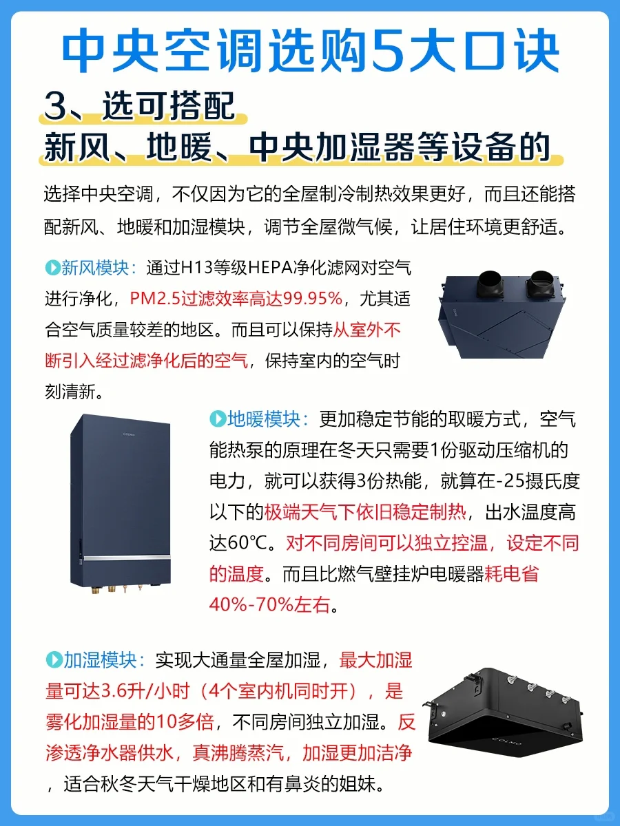 3️⃣选可搭配新风、地暖、中央加湿器等设备的