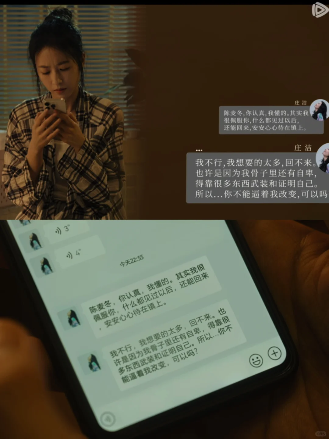 如果说15集庄洁希望通过“虚假的干柴烈火”来发泄情绪、企图以“假热烈”的方式来勉强自己,那么16集雪夜电话倾诉就是真正的缠绵和亲密。