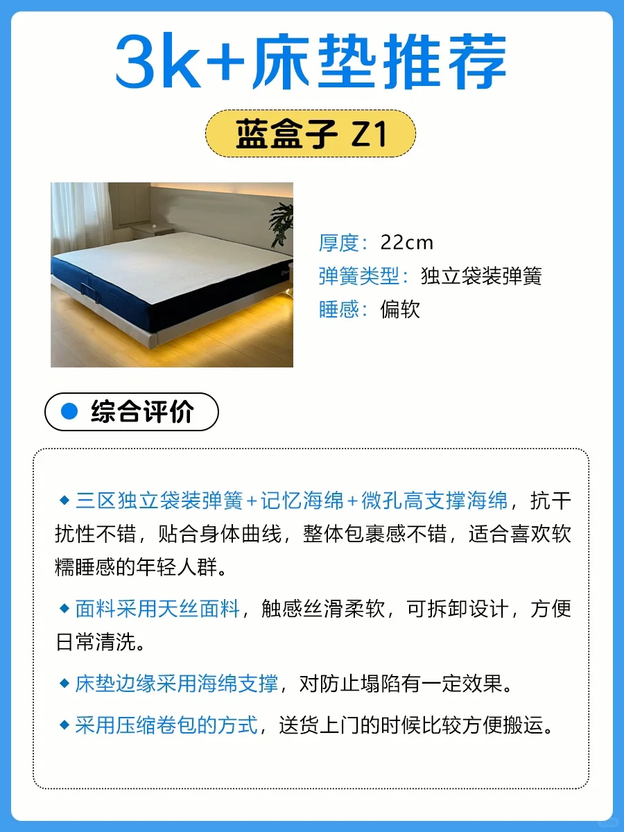 ✅选择独立袋装弹簧,能提供更好的睡眠支撑和缓解身体压力,静音,抗干扰性好,伴侣频繁翻身也不会被打扰。