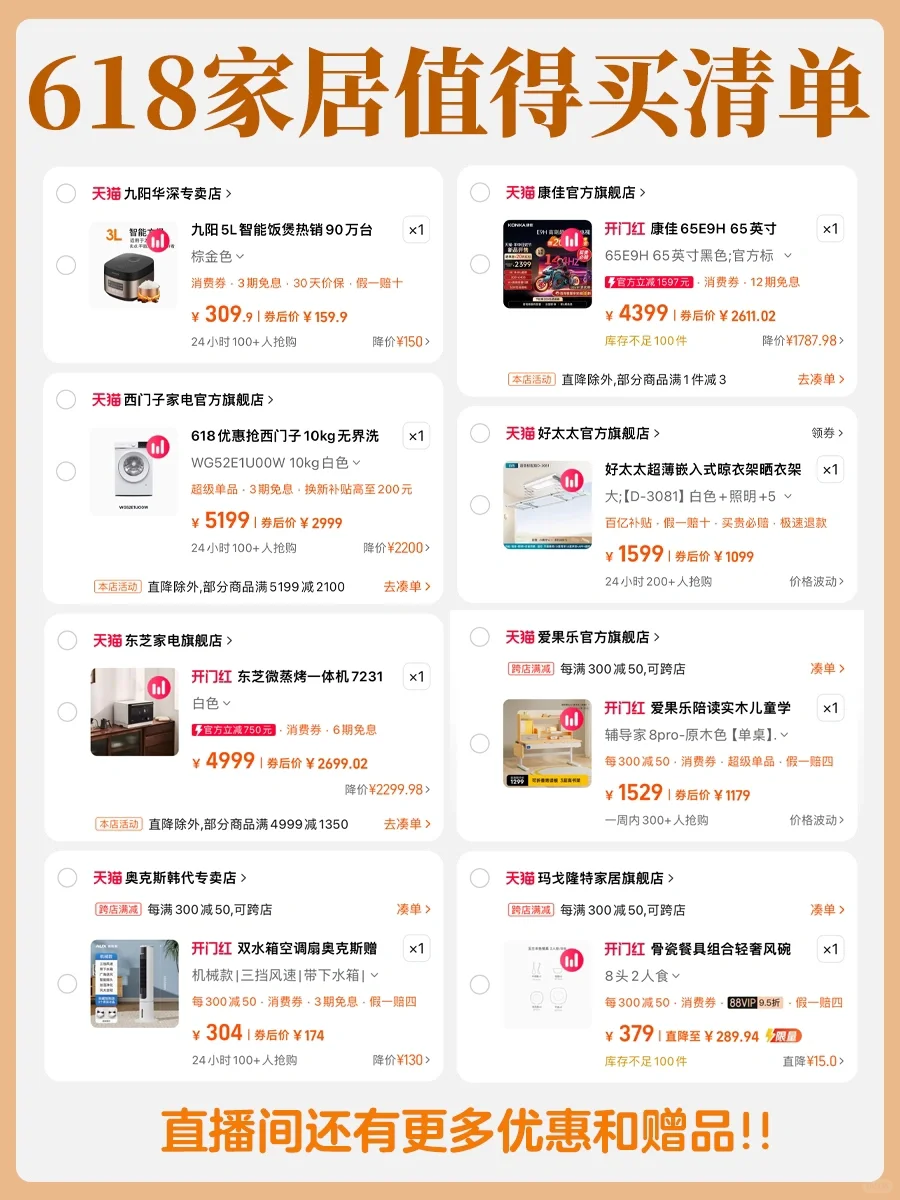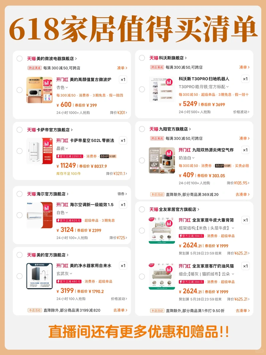 装修真的要花好多钱‼️趁着618狂欢节,买家电、软装狠狠省一笔💰呀!熬夜整理了2个晚上的家居清单分享,姐妹们一起互相📝抄作业~