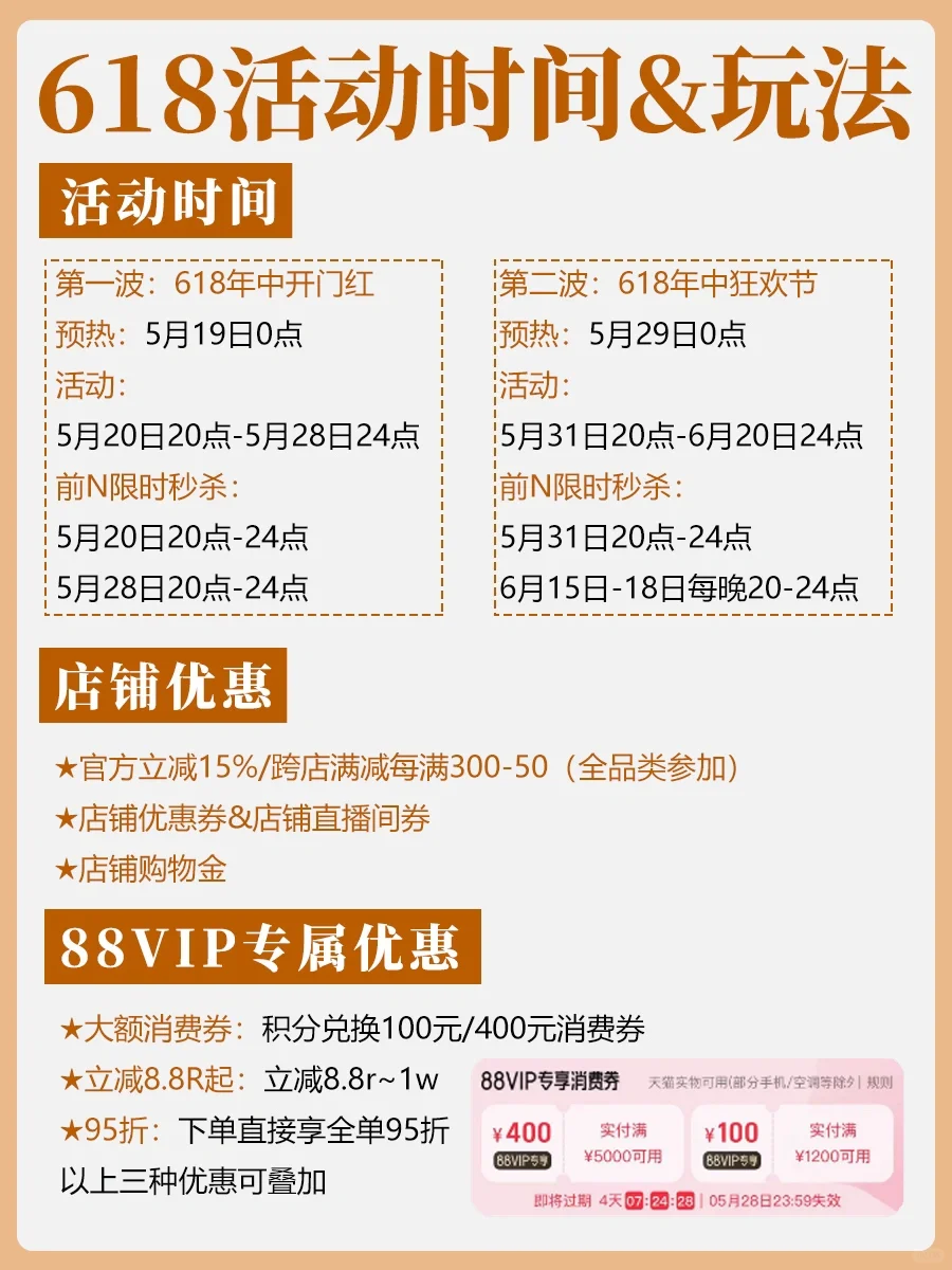 ✨88VIP还有100元和400元大额优惠券,记得领取呀~