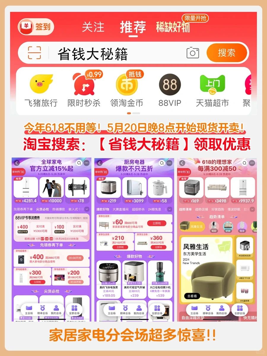 👉🏻电视、冰箱、空调、洗衣机、净水器、风扇、厨房家电、扫地机、家具、晾衣架、收纳、餐具等必入家居清单📝都给大家整理好了,买大家电一定别忘了领88VIP大额券,到手还能省更多,姐妹们快冲呀‼️